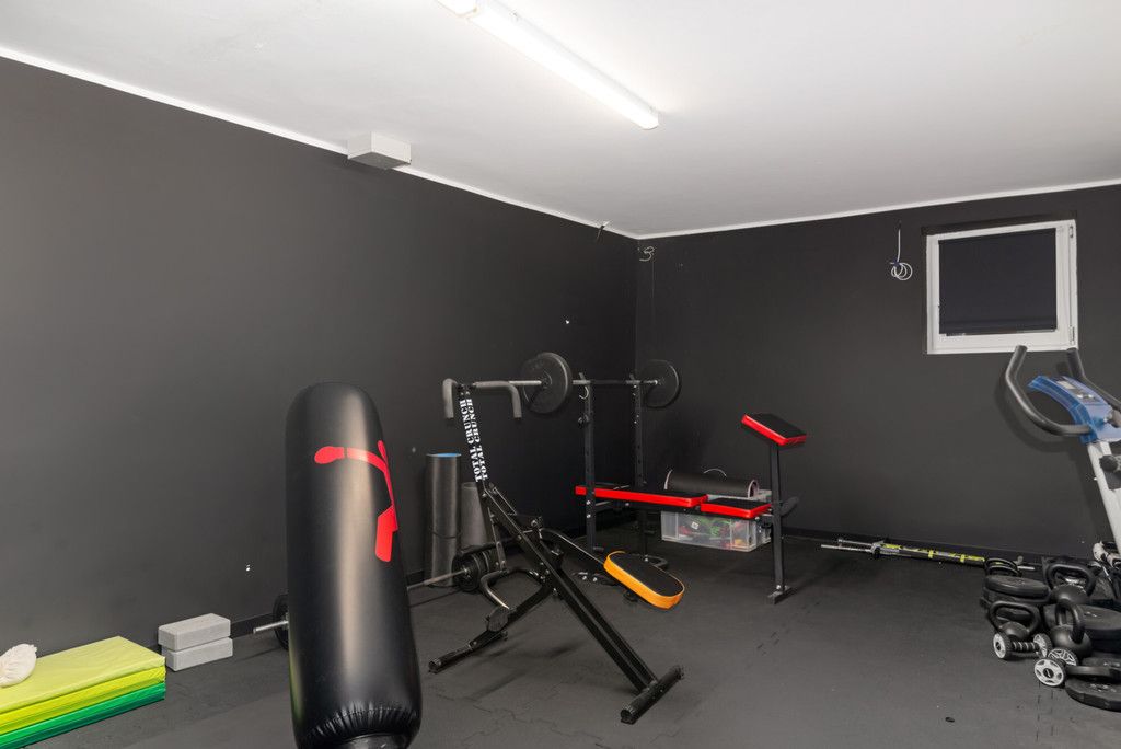 Na tym poziomie znajduje się siłownia - przestronna, bez okien, magazynek z oknem