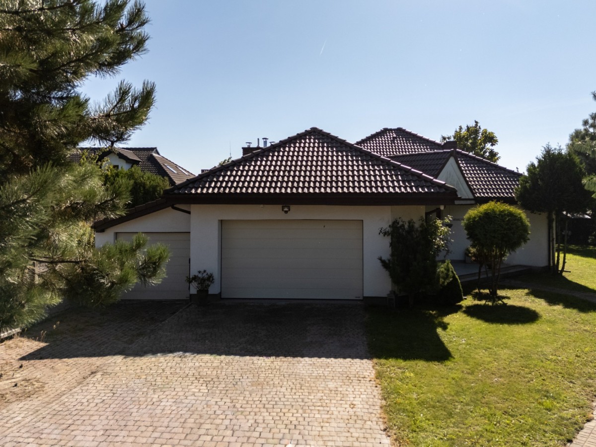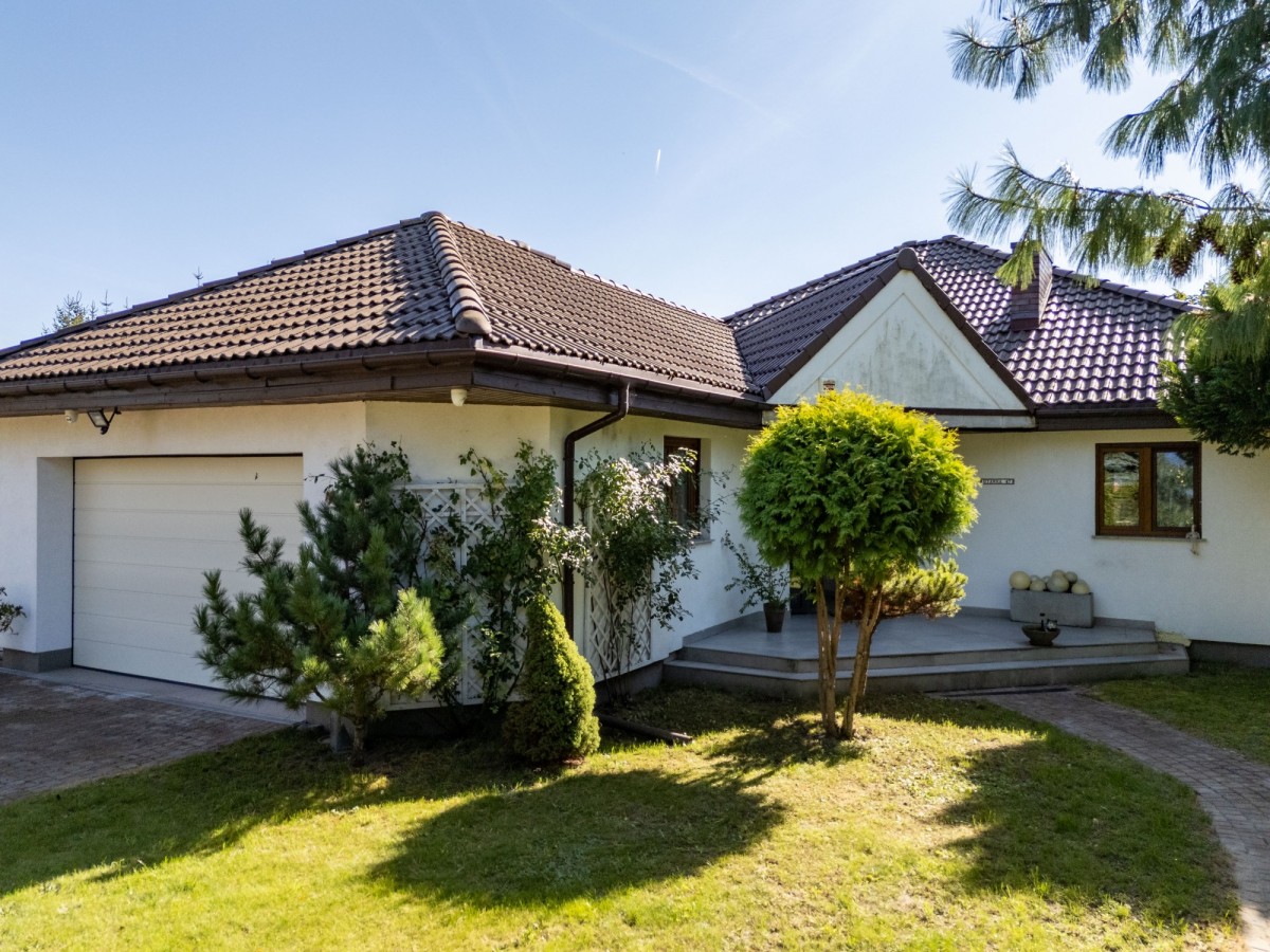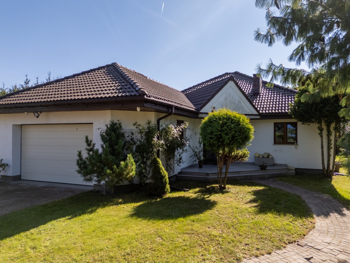 Parterowy dom otoczony zielenią w granicy Poznania, gmina Komorniki.