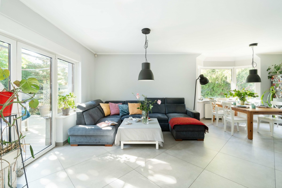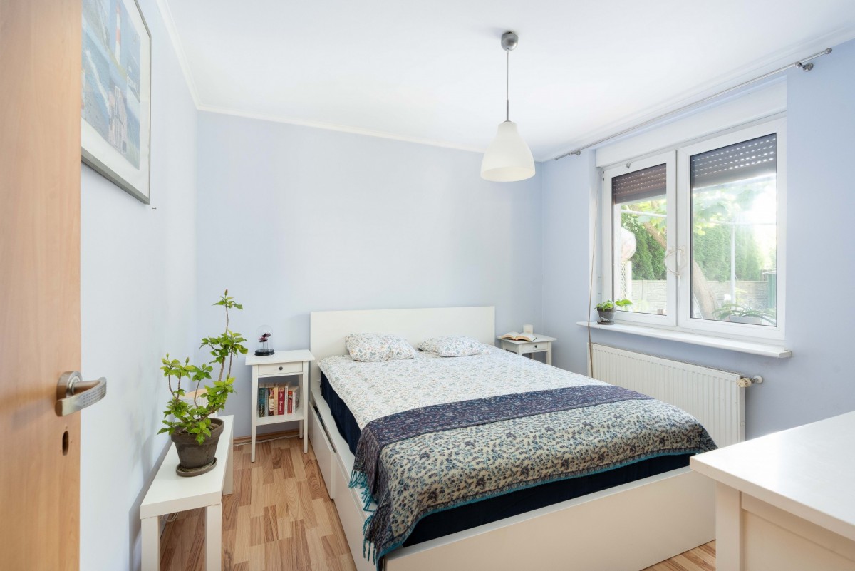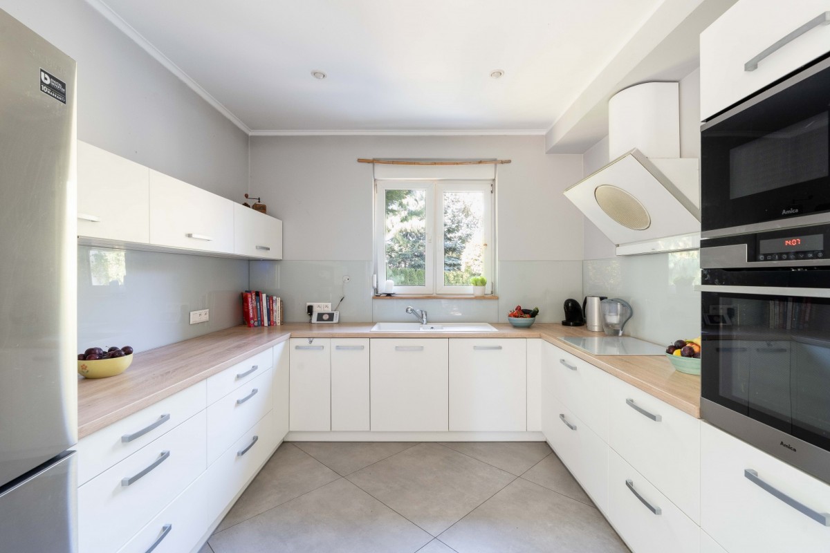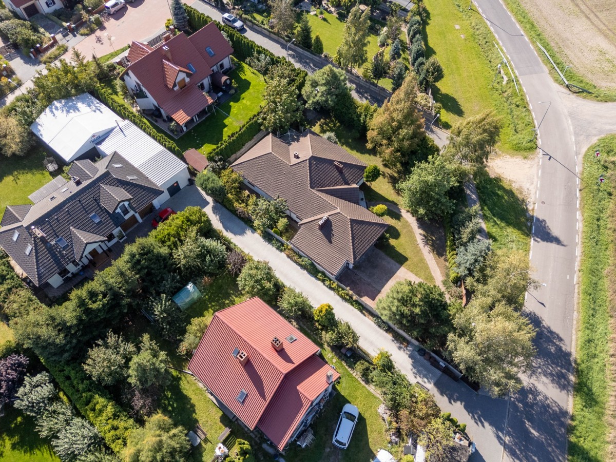 Parterowy dom otoczony zielenią w granicy Poznania, gmina Komorniki.