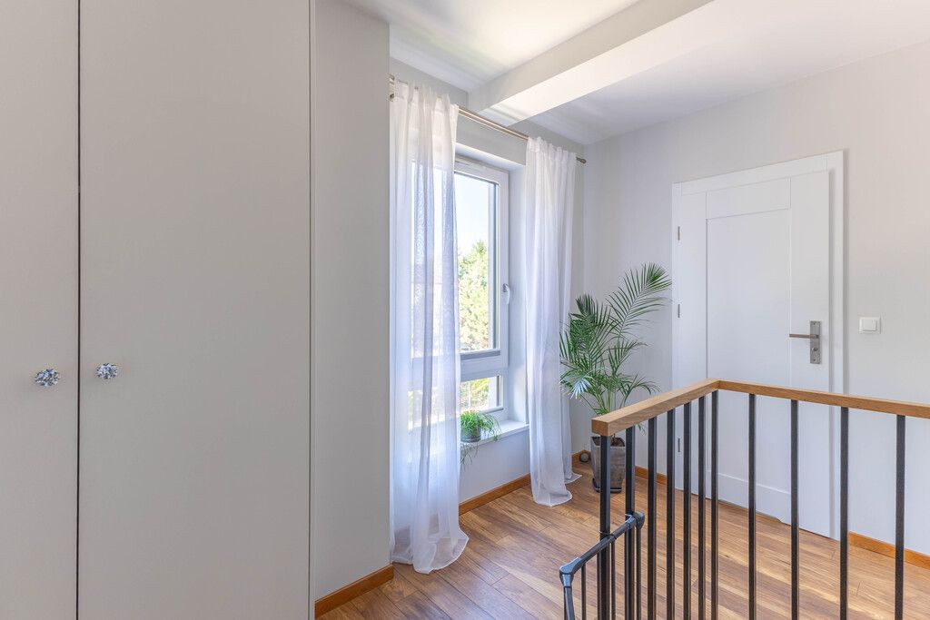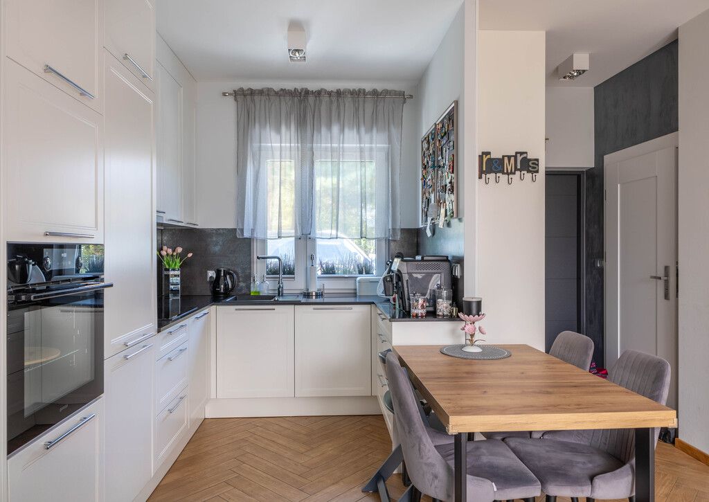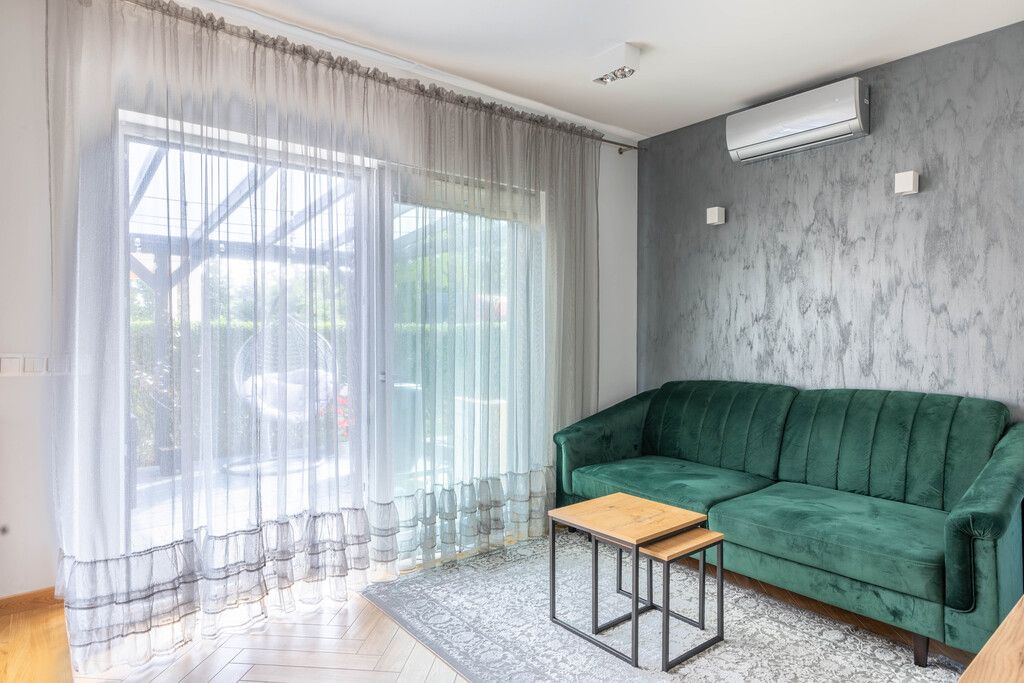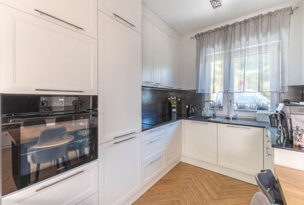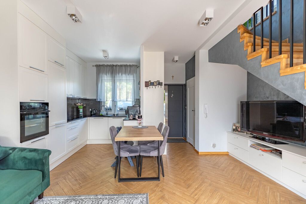 The house was finished using high-quality materials. The floors are laminate and stoneware, and the walls are plastered. The staircase is made of oak wood. PVC windows. Underfloor heating on the ground floor and a gas condensing boiler ensure year-round thermal comfort. Built-in furniture is included in the price.