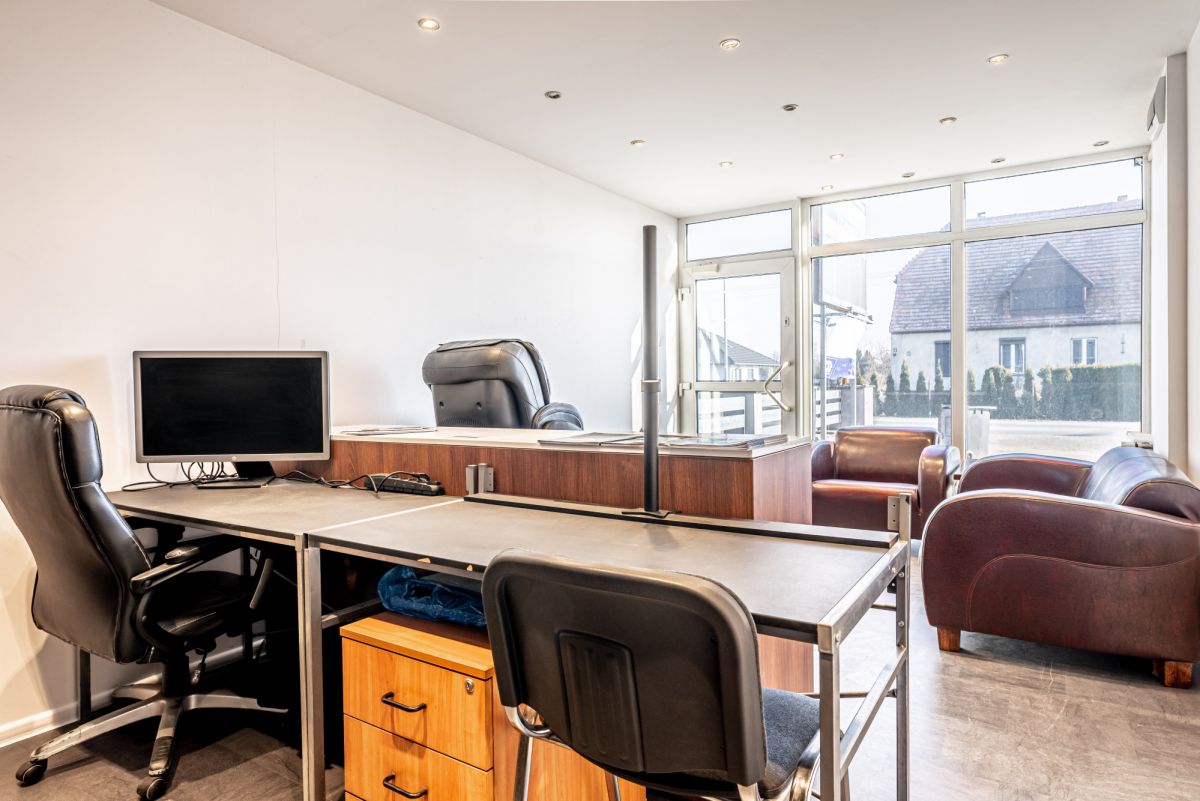 Obiekt był dotychczas wynajmowany na potrzeby firmy, co znajduje odzwierciedlenie w obecnym układzie pomieszczeń, jednak funkcja mieszkalna może zostać przywrócona bez ingerencji w konstrukcję budynku.