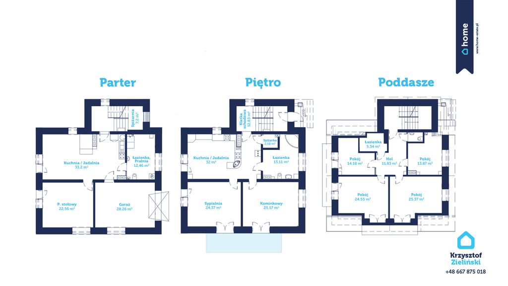 Powierzchnia użytkowa: 261,95 m2 (parter, poddasze oraz dolny parter)