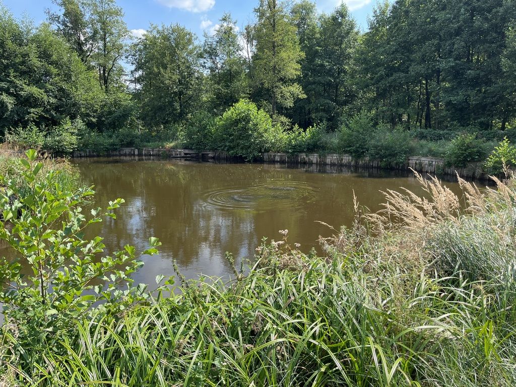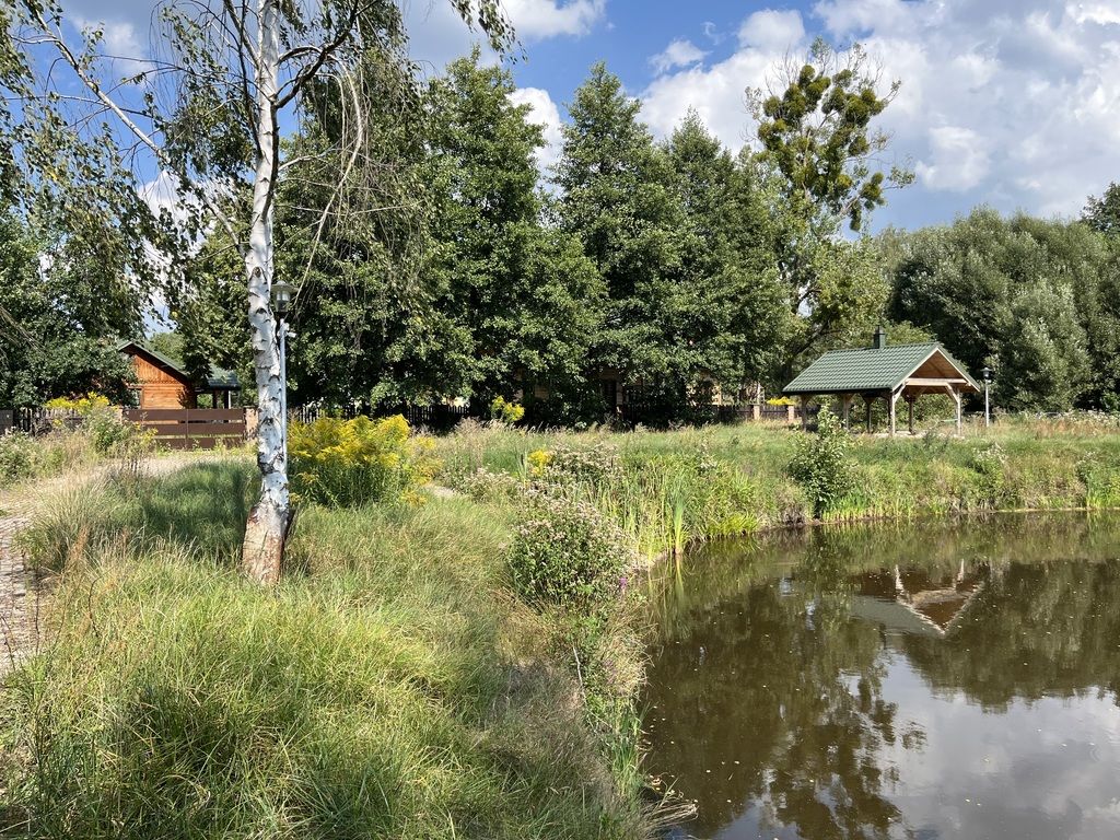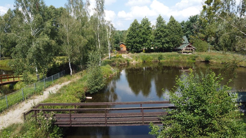 -druga części nieruchomości oddzielona płotem z bramą wjazdową, to teren na którym znajduje się duży zbiornik wodny (staw)o powierzchni ponad 3000 m2. Możliwa hodowla ryb. Zbiornik cały czas zasilany woda z rzeki.