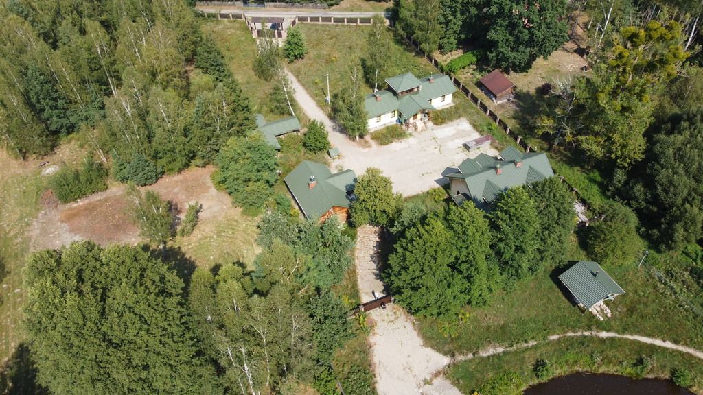 - na pierwszej części działki od bramy wjazdowej znajduje się trzy budynki mieszkalne. Dwa z nich użytkowane, trzeci w trakcie budowy (pełna dokumentacja budowlana). Większa część prac wykonana. Każdy z budynków może funkcjonować indywidualnie. Wyposażone są w łazienki, kuchnie, pokoje dzienne, sypialne.