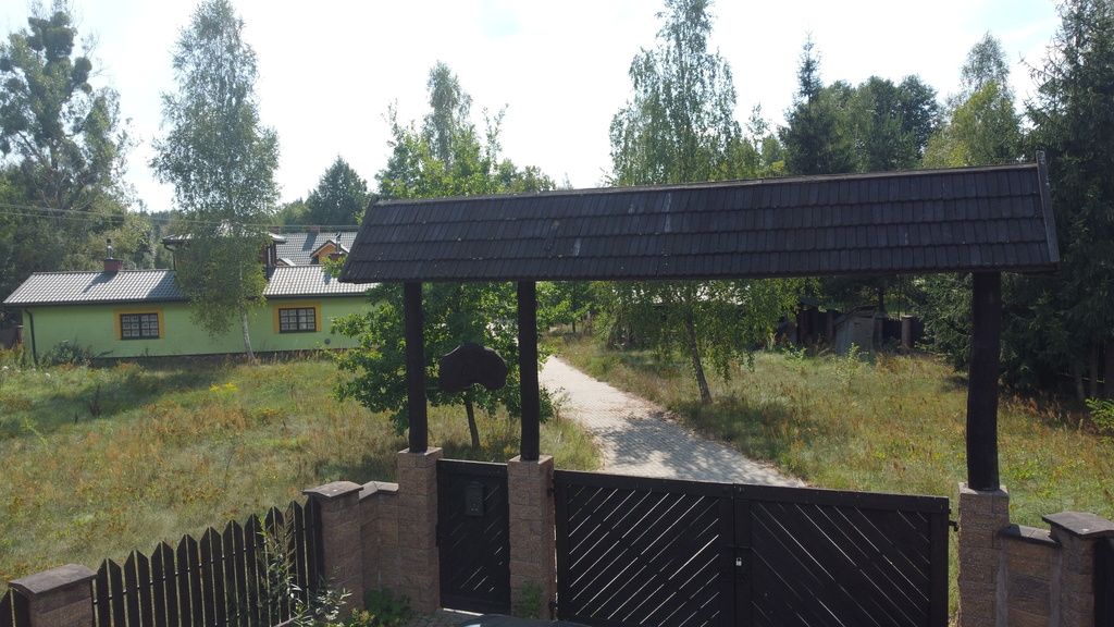 - działka ogrodzona płotem metalowy. Na działkę prowadzi brama wjazdowa z drewnianym dużym szyldem nad nią co nadaje jej szczególny charakter.