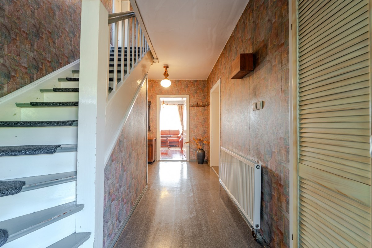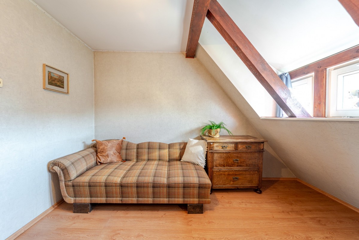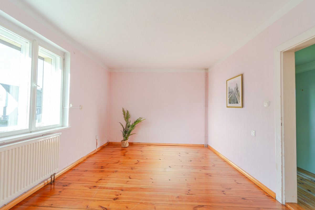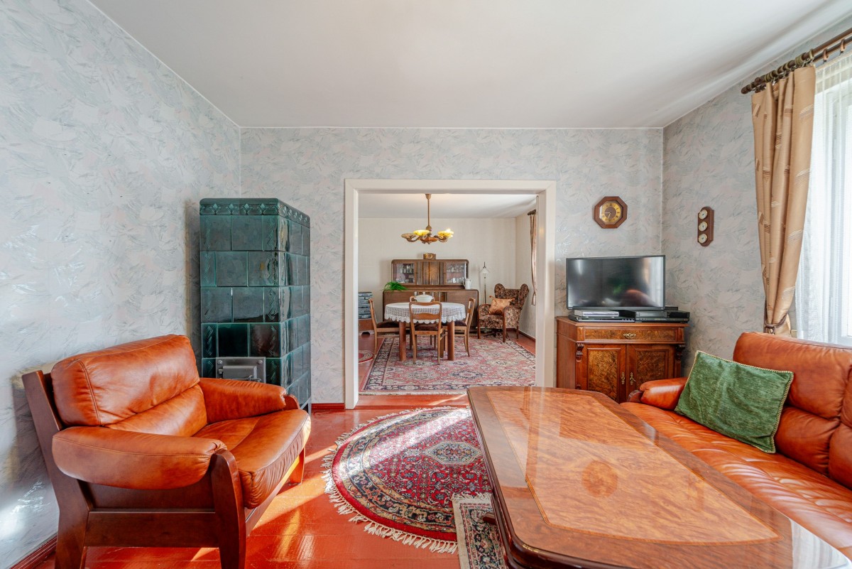 Dwukondygnacyjny budynek mieszkalny o powierzchni użytkowej 154 m², został wybudowany w 1940 r. metodą tradycyjną, z cegły. Dom jest w całości podpiwniczony. Wejście do budynku od strony podwórka prowadzi przez werandę, która może być np. miejscem spotkań dla całej rodziny. Na parterze znajdują się dwa niewyodrębnione prawnie lokale mieszkalne - lokal po lewej stronie składa się z dwóch urządzonych pokoi w układzie przejściowym, dużej kuchni ze spiżarnią oraz łazienki, a w większym pokoju znajduje się także kominek. Lokal mieszkalny po prawej stronie składa się z dwóch pokoi - w tym jednego przejściowego - kuchni i łazienki. Ta część domu wymaga remontu. Na piętrze mieści się przestronna sypialnia z małą toaletą, gabinet oraz dwa pokoje. Okna na piętrze są plastikowe. Budynek jest częściowo ocieplony od zewnątrz i od środka. Instalację elektryczną zmodernizowano na miedzianą. Około 2000 r. wymieniono na dachu dachówkę, docieplono również strop. Okna domu są plastikowe, od ulicy drewniane, skrzynkowe z roletami zewnętrznymi. Układ pomieszczeń stwarza możliwość wygodnego zamieszkania dużej rodzinie , ale ten dom będzie również idealnym rozwiązaniem dla osobnego zamieszkania dla dorosłych dzieci i rodziców.