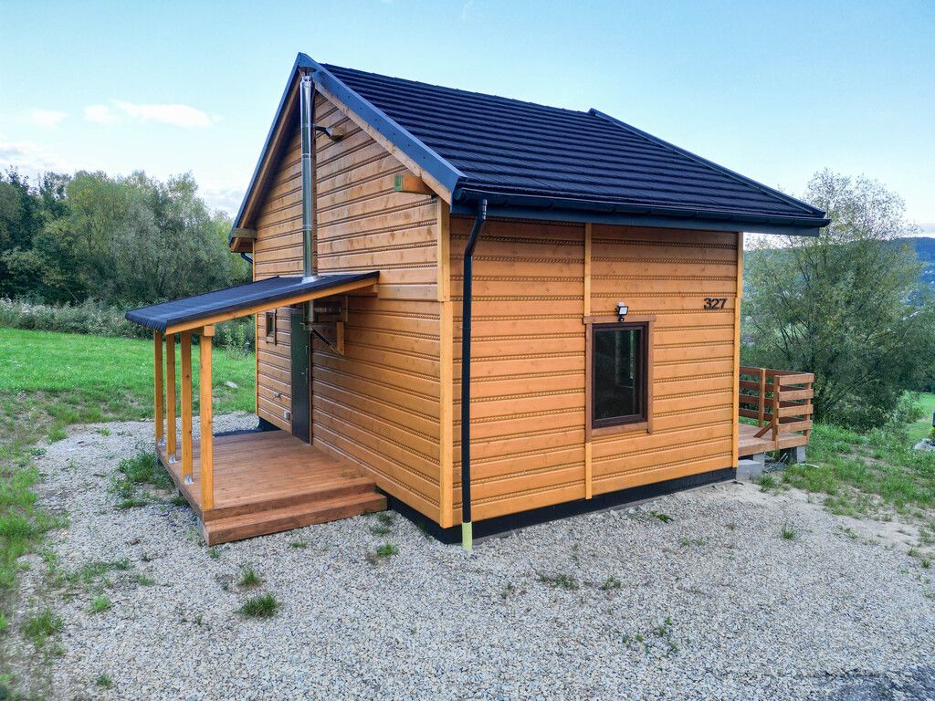 Domek letniskowy o powierzchni ok. 60 m² oraz tarasem 15 m² na dużej, widokowej działce o powierzchni 34,3 ara, położonej na widokowym miejscu.