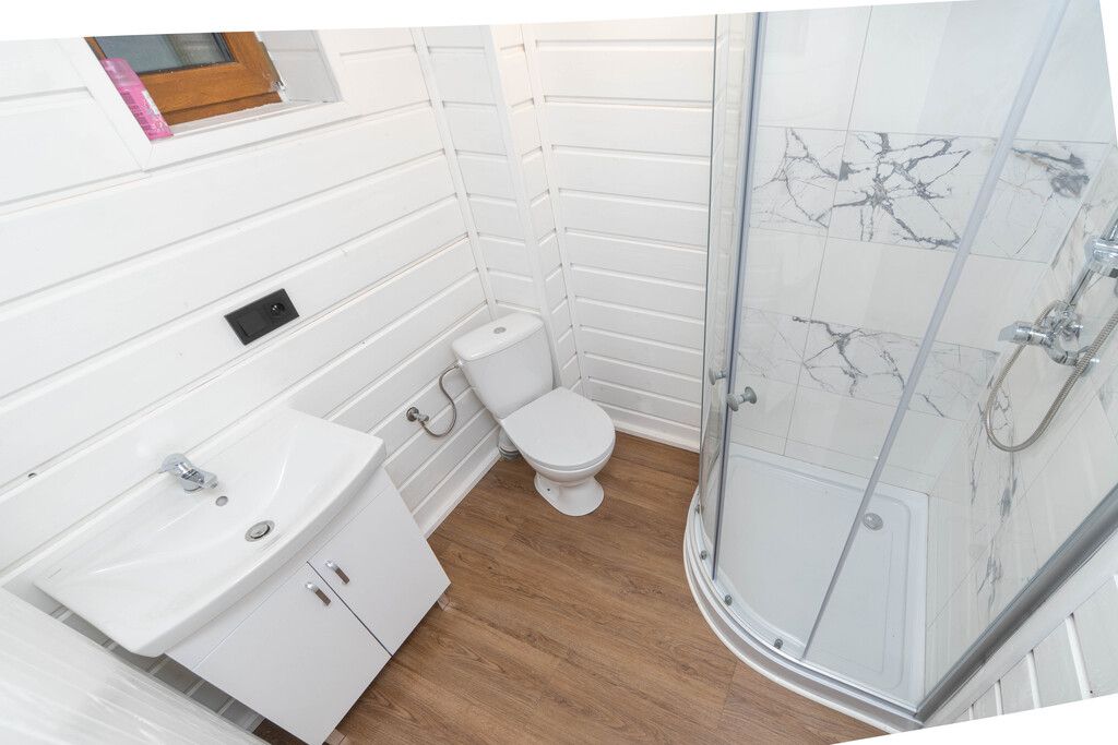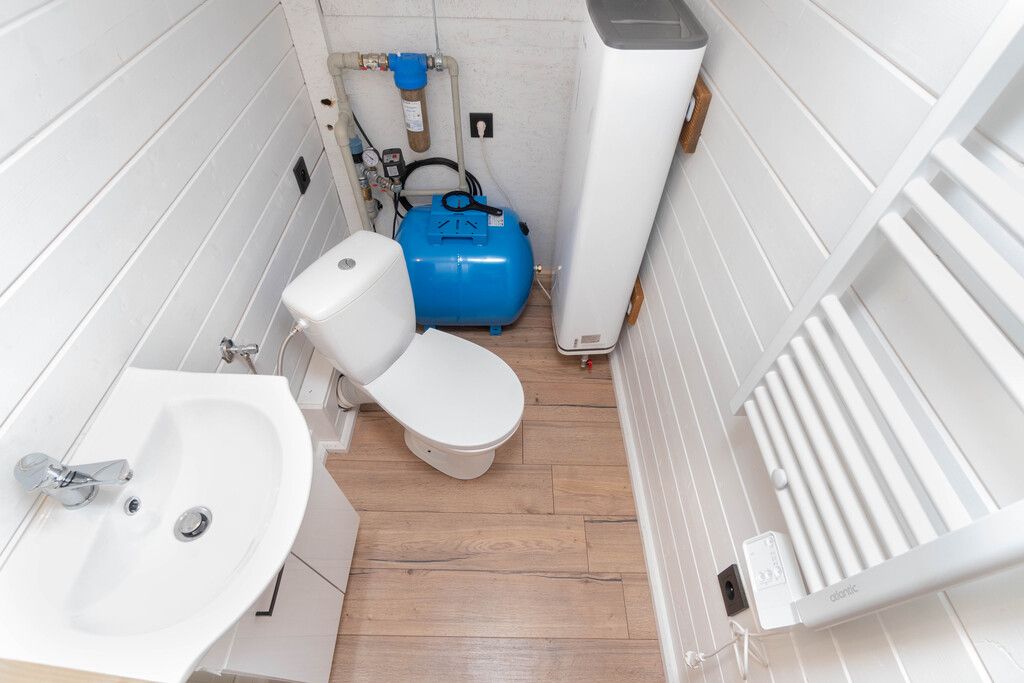 The cottage is heated by a fireplace and electric heaters, and the water is heated by an electric heater. The bathrooms have underfloor heating.