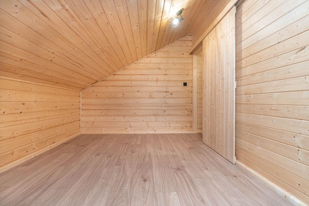 Ściany budynku zostały ocieplone wełną i obłożone deską elewacyjną. Do aneksu została doprowadzona siła.