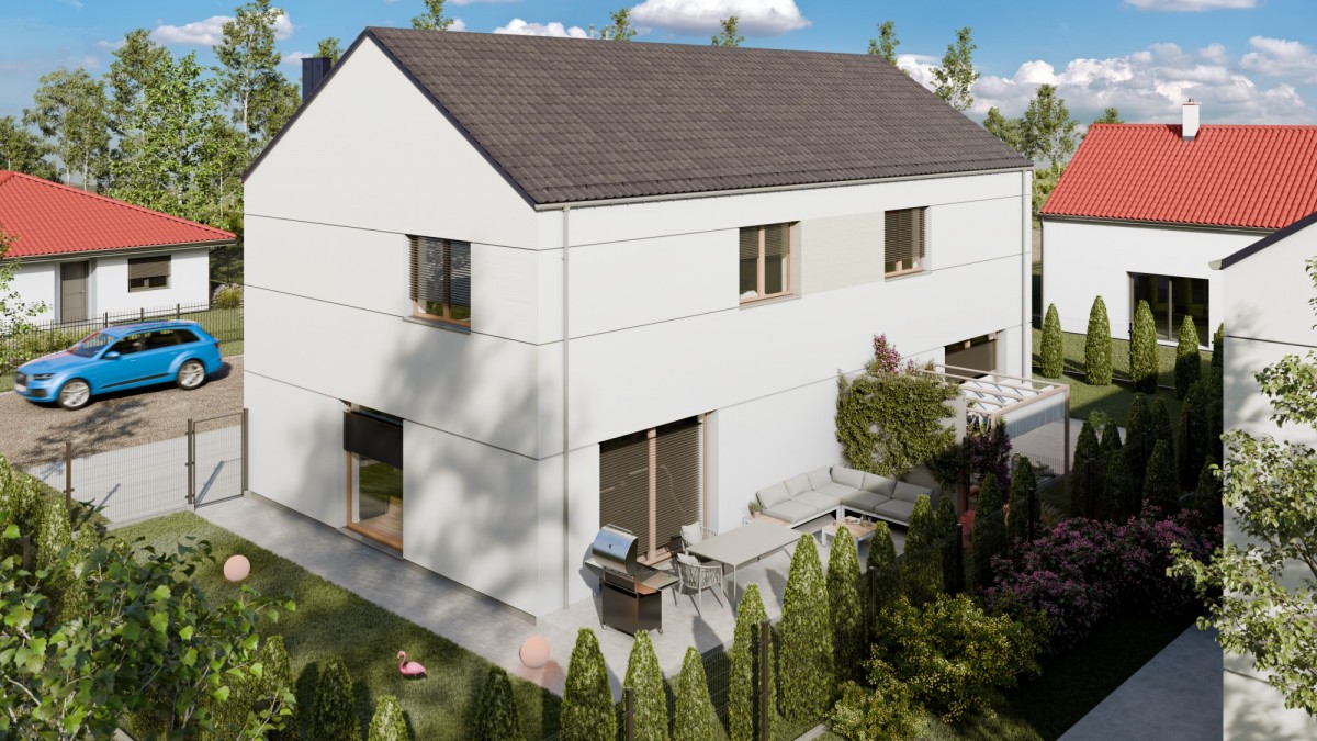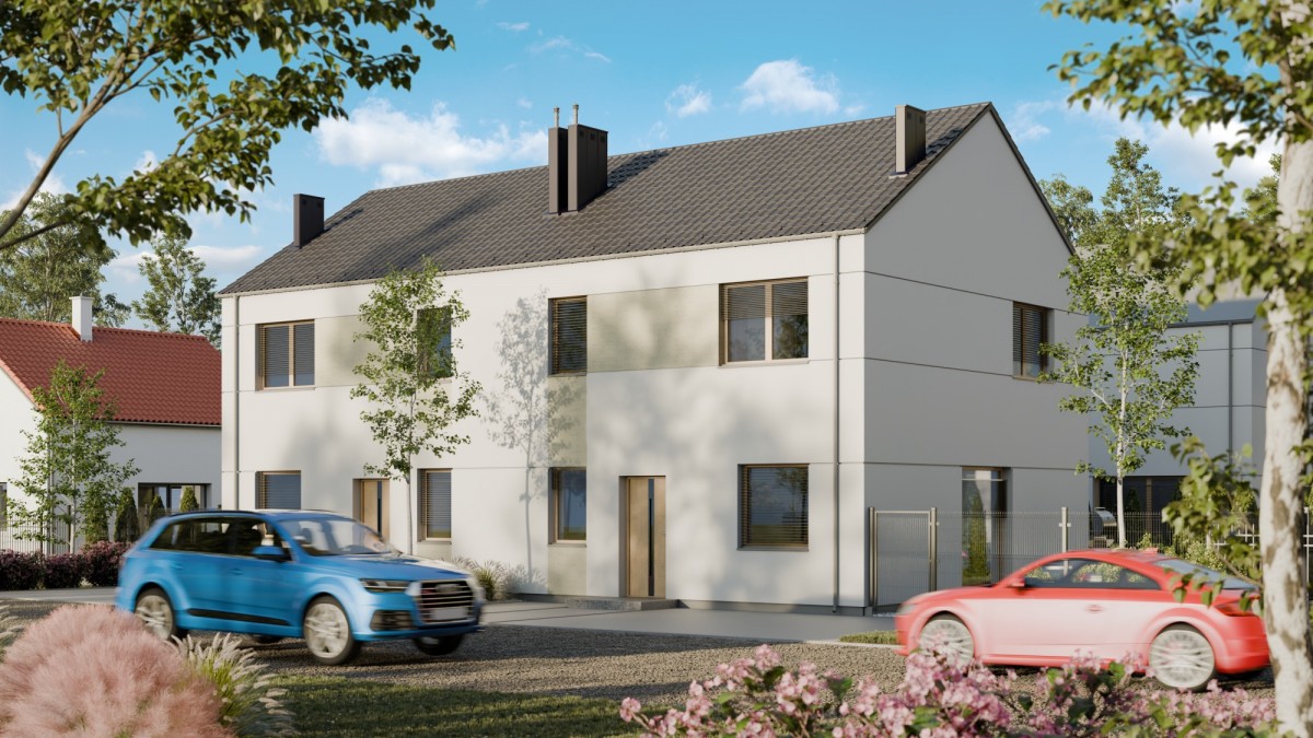 Nowoczesny dom w zabudowie bliźniaczej | Koziegłowy, ul. Kwiatowa