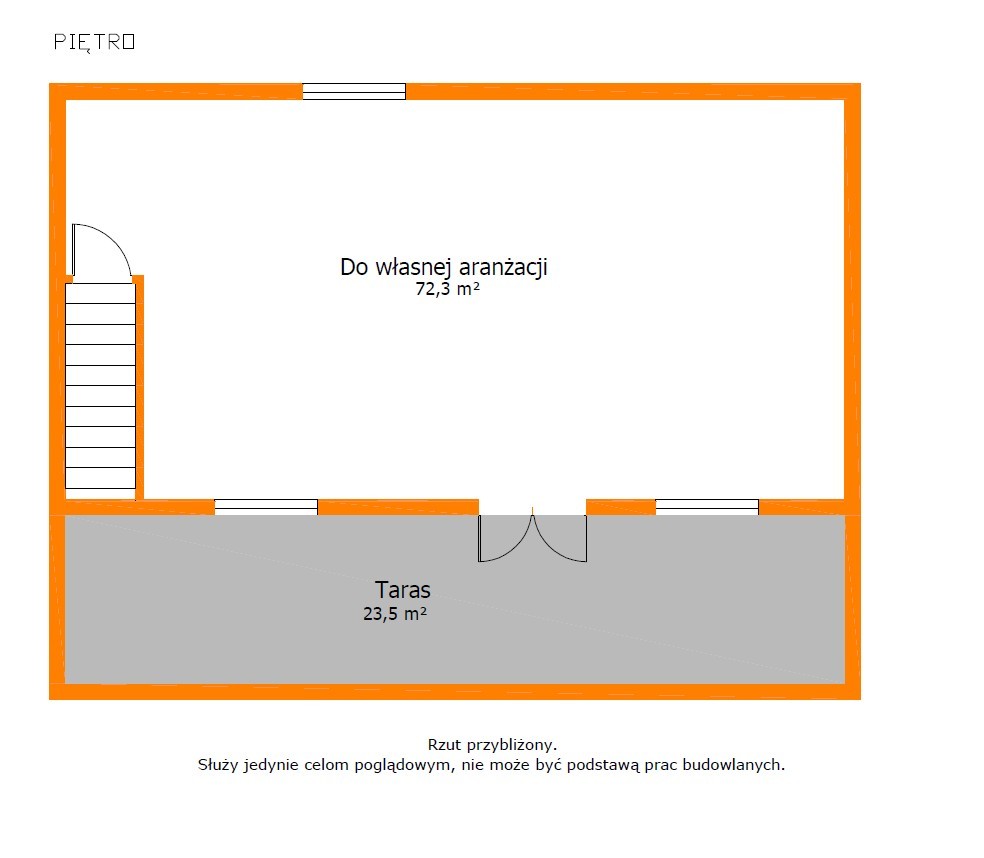 Powierzchnia 72 m² do własnej aranżacji - idealna do stworzenia dodatkowych pokoi, biura czy strefy relaksu.