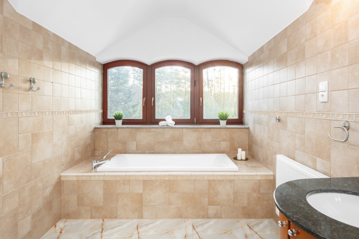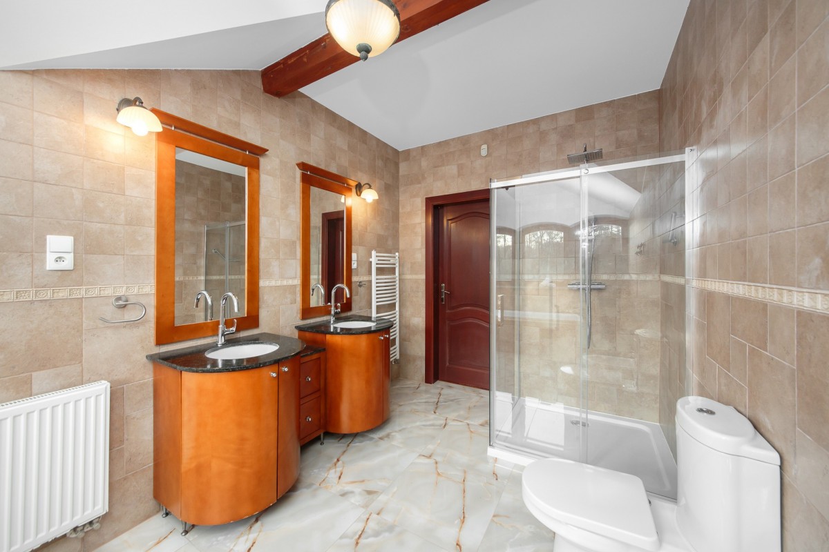 Zastosowano wysokiej jakości włoską glazurę, mahoniowe okna oraz meble kuchenne z litego dębu, zaprojektowane na indywidualne zamówienie. W każdym pomieszczeniu znajduje się klimatyzacja, a za ogrzewanie odpowiada dwufunkcyjny piec gazowy marki De Dietrich.