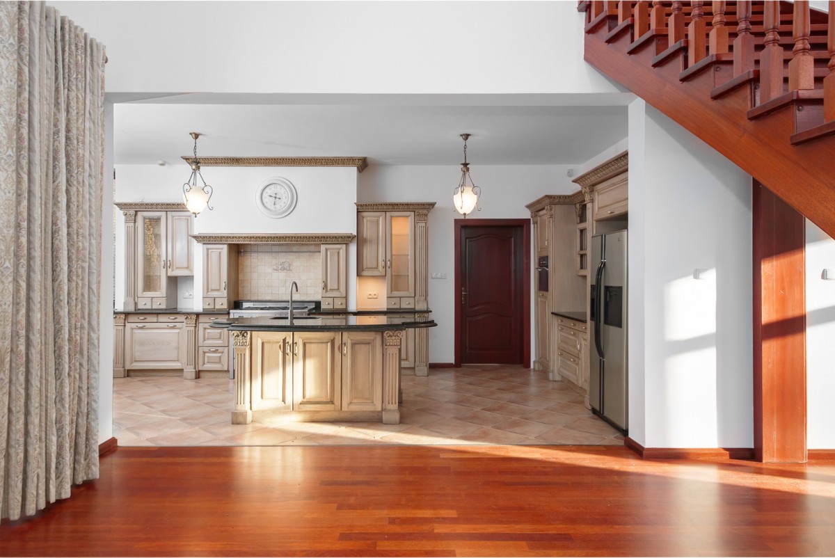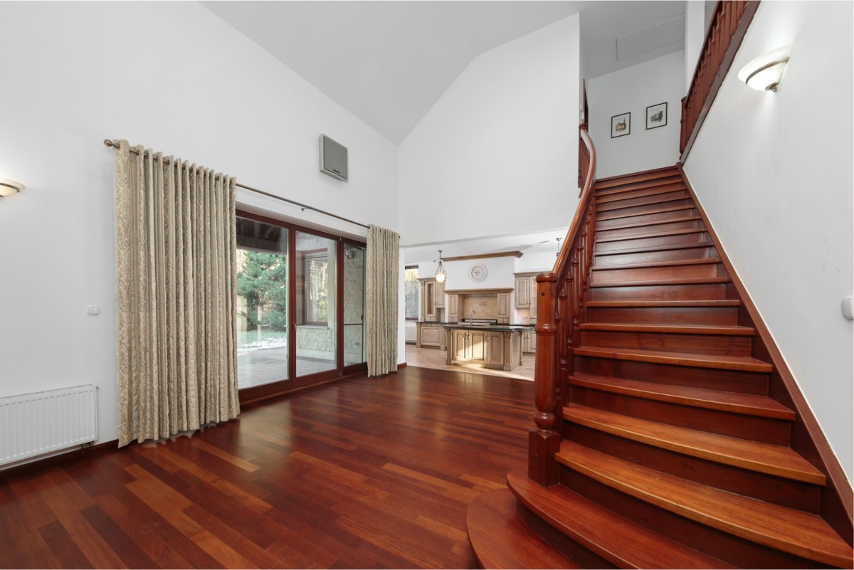 Sercem domu jest przestronny, otwarty salon z wyjściem na taras i ogród, połączony z kuchnią, która została zaprojektowana na indywidualne zamówienie na wzór Clive Christian wykonane z litego dębu. Dodatkowym atutem jest gabinet z kominkiem, idealny do pracy lub spokojnego odpoczynku, a także sala bilardowa, stanowiąca prywatną strefę rozrywki.