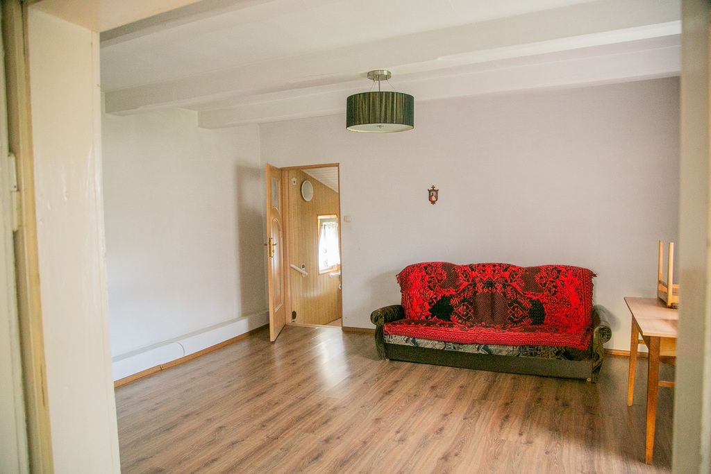 Nieruchomość obejmuje dom mieszkalny, duży budynek gospodarczy oraz ustawną działkę o powierzchni około. 30 arów
