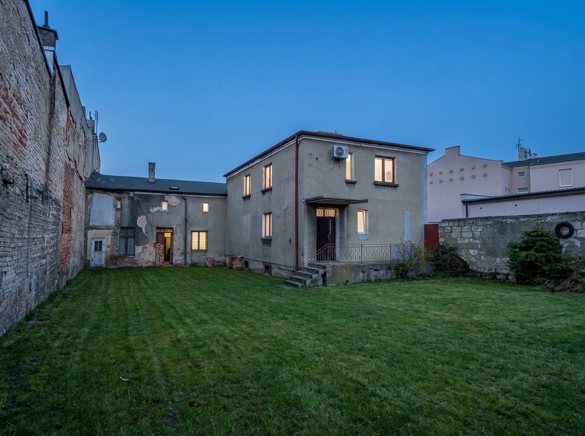 Nieruchomość posiada również duże, zamknięte podwórze z wjazdową bramą, które otoczone jest solidnym betonowym murem, zapewniającym prywatność i bezpieczeństwo. Na terenie podwórza znajdują się także trzy wybudowane pomieszczenia gospodarcze, które mogą pełnić funkcję magazynów lub zaplecza technicznego. Łączna powierzchnia wynosi 656 m². Nieruchomość wymaga prac remontowych, jednak posiada solidną konstrukcję oraz bardzo duży potencjał aranżacyjny i inwestycyjny. Dzięki dużej powierzchni, licznym pomieszczeniom oraz lokalom użytkowym możliwe jest stworzenie dochodowej inwestycji obejmującej wynajem mieszkań, pokoi lub prowadzenie działalności usługowej.