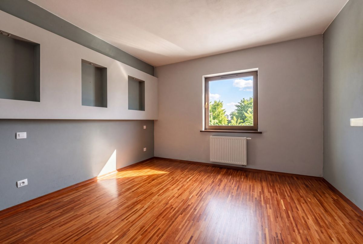podłogi: gres oraz parkiet z egzotycznego drewna Merbau (lakierowany),