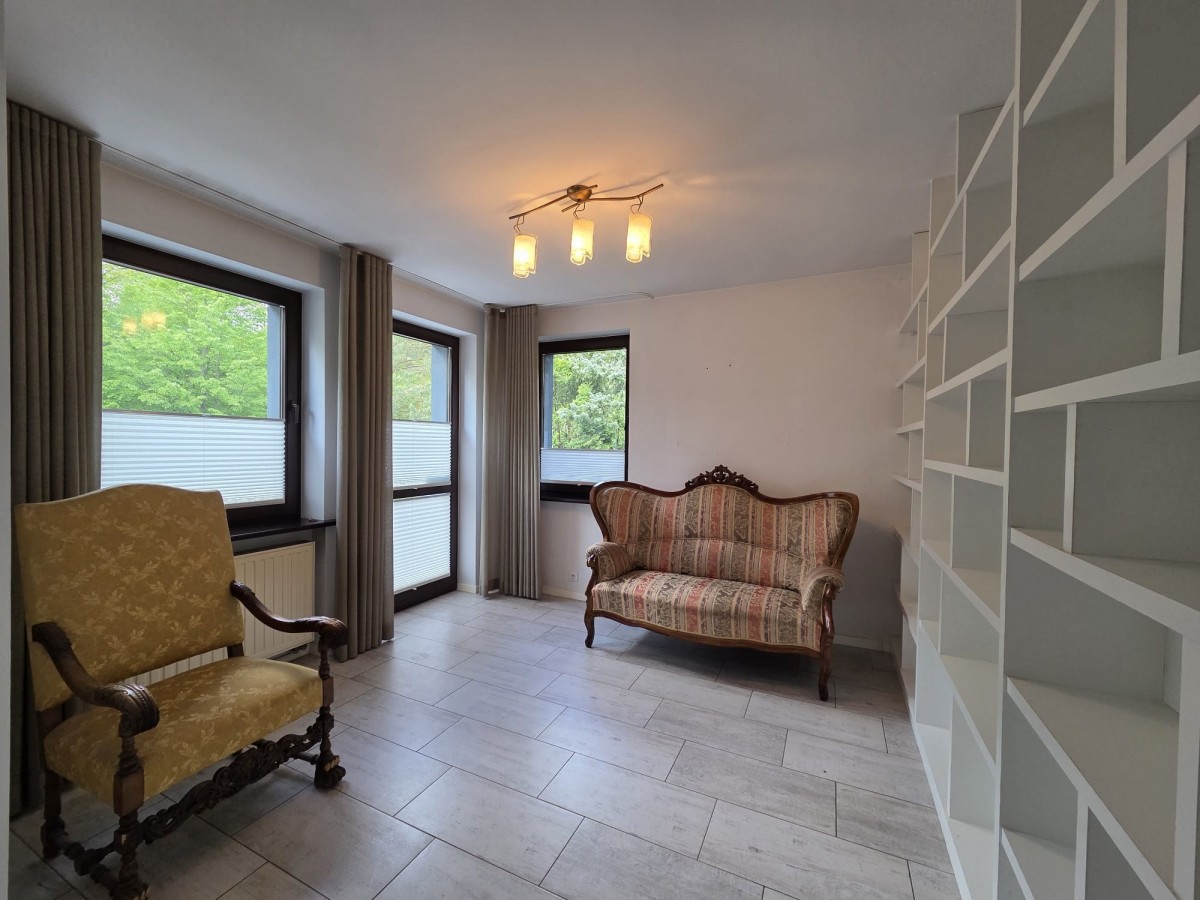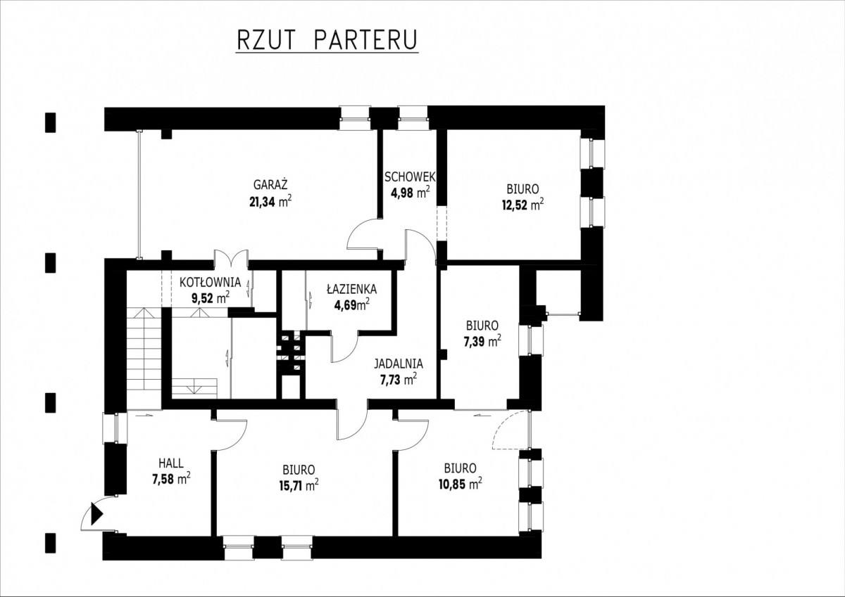 Piętro — przestronna część mieszkalna obejmująca elegancki salon (30m2!), dwie wygodne sypialnie, pokój relaksu/czytelnię, kuchnię, łazienkę oraz komunikację. Niezależne wejście zwiększa komfort użytkowania i umożliwia swobodne połączenie życia prywatnego z zawodowym.