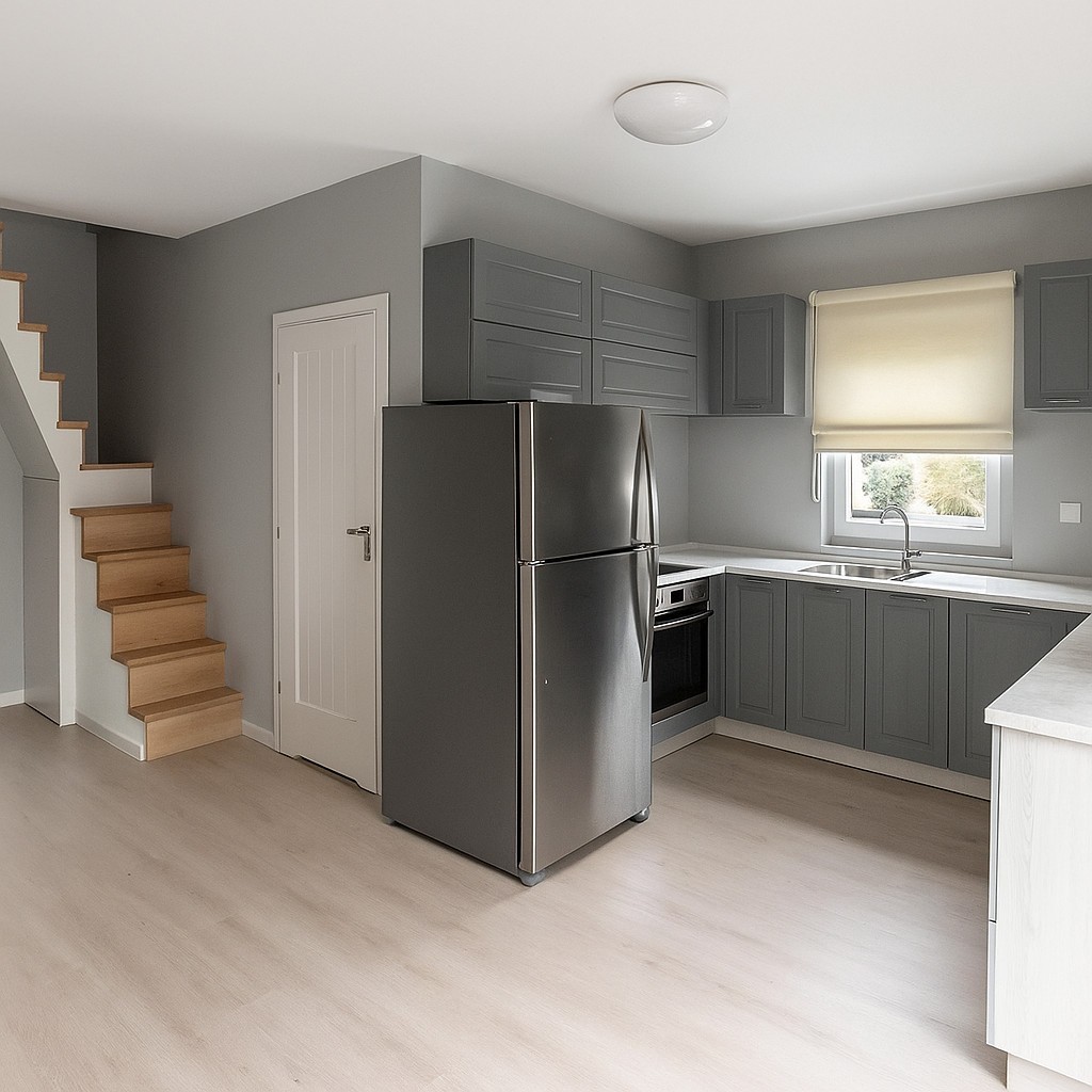 Dom w zabudowie szeregowej (segment środkowy) o powierzchni użytkowej 91,6 m² usytuowany jest na działce o powierzchni 195 m². Budynek pochodzi z 2025 roku i sprzedawany jest w stanie deweloperskim, co daje możliwość własnej aranżacji wnętrz.