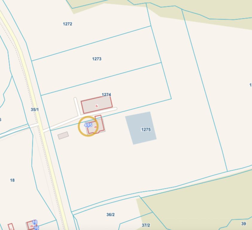- 3 cadastral plots (No. 1273, 1274, 1275)