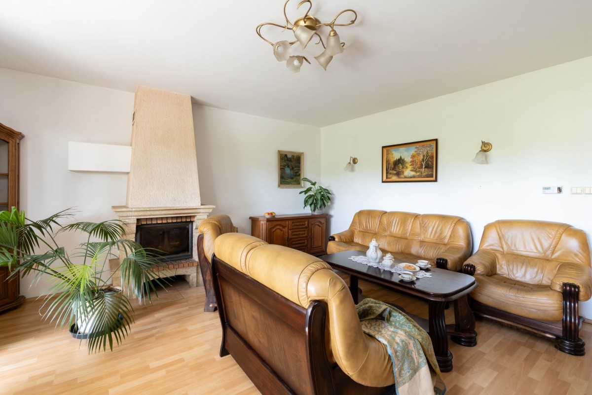 Ogrzewanie: gazowe + piec na opał oraz kominek; ogrzewanie podłogowe w kuchni, korytarzu i łazienkach.