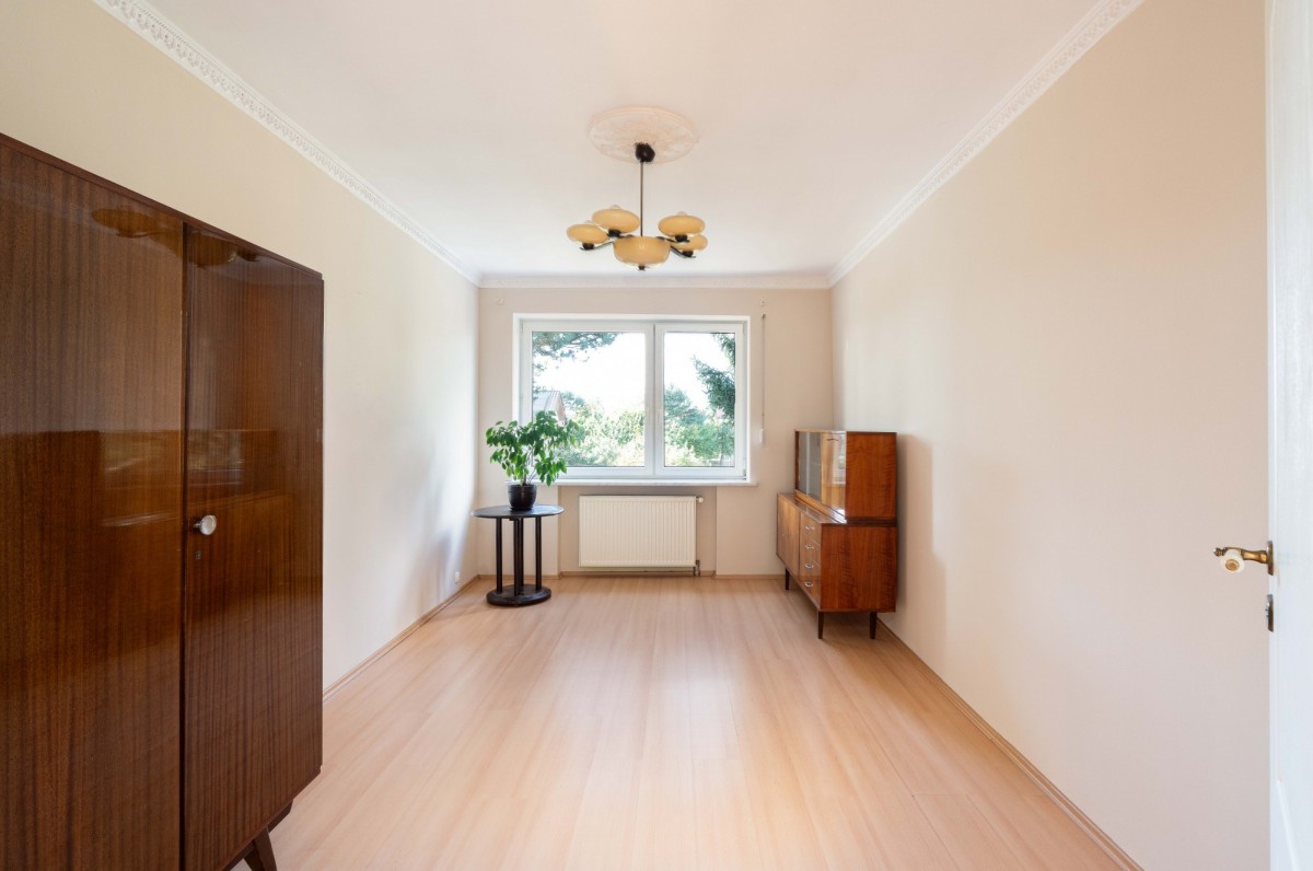 - trzecią (15,2 m²) w sam raz na gabinet lub pokój gościnny. Wszystkie pokoje są odświeżone z zachowaną gustowną sztukaterią. Dopełnieniem jest łazienka z oknem (5 m²), w której stoi wygodna wanna z hydromasażem.