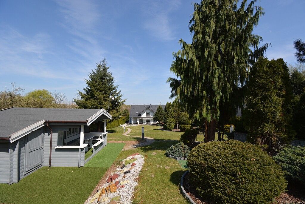 Ogród: Przestronny, zadbany teren z altaną, domkiem letnim, strefą zabaw dla dzieci i systemem automatycznego nawadniania. Doskonałe miejsce na rodzinny wypoczynek i spotkania z bliskimi.