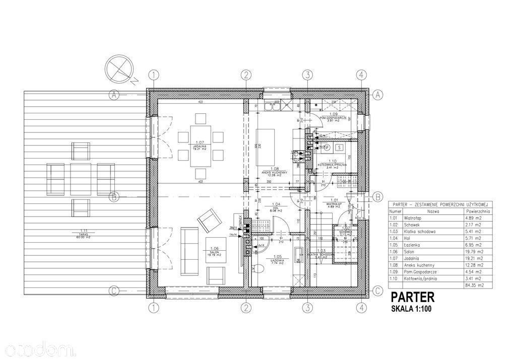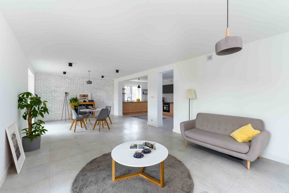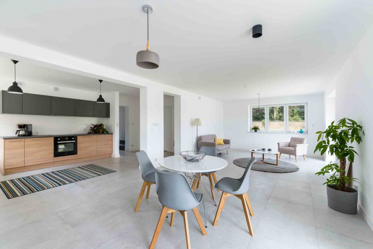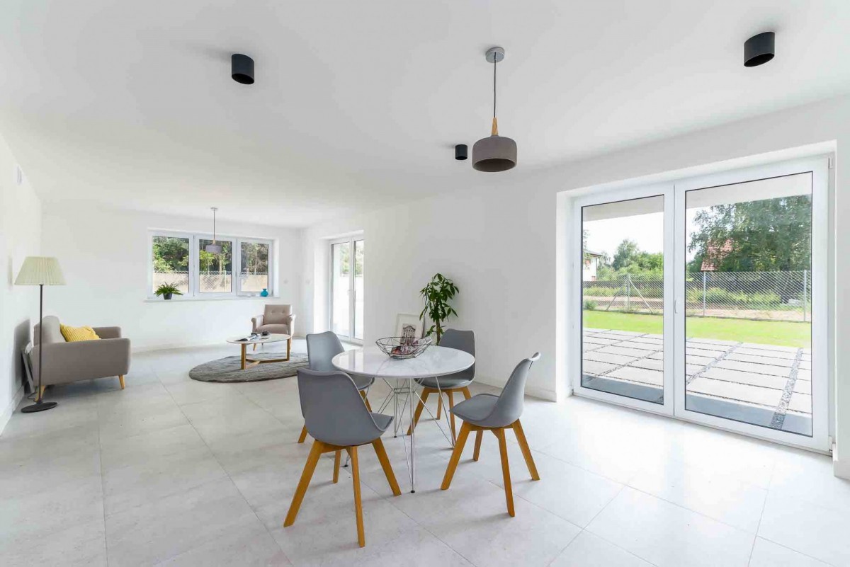 - salon z wyjściem na taras, otwarta kuchnia i jadalnia,