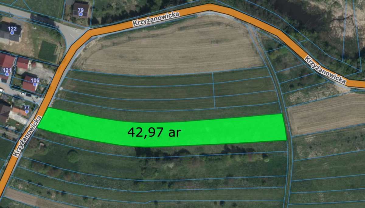 Działka nr 7 kosztuje 499 000 zł i znajduje się przy ul. Krzyżanowicka 106 w Bochni.
