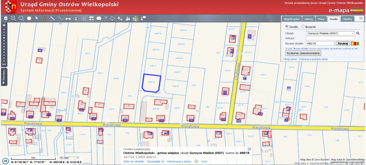 Powierzchnia działki 780m, numer ewidencyjny 498/18.
