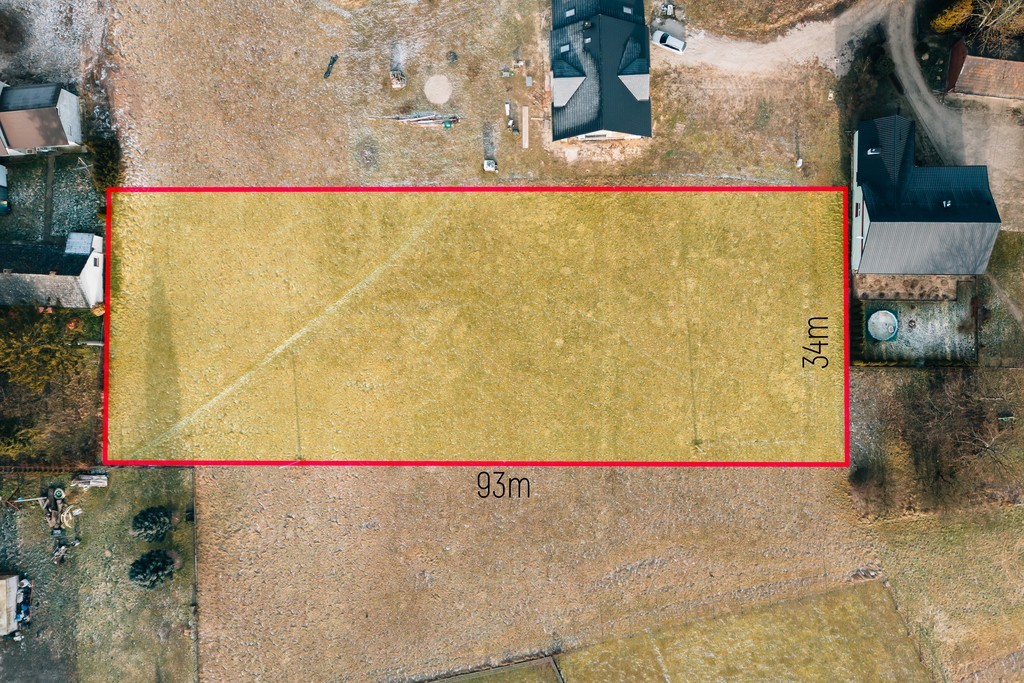 - Regularny kształt ułatwiający optymalne zagospodarowanie terenu, wymiary: ok. 93 m x 34m