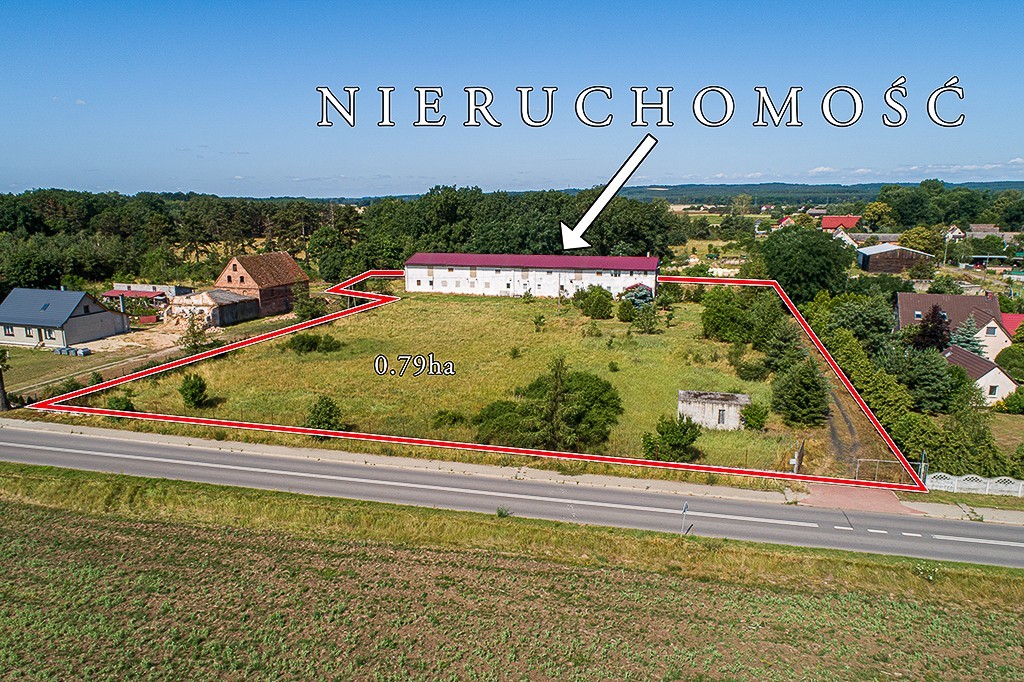 Dla tej lokalizacji nie ma sporządzonego miejscowego planu zagospodarowania przestrzennego, a w okolicy przeważają grunty kl.IV i V. Działka oznaczona numerem 304/4 (91.200 m²) stanowiła kiedyś pastwisko, obecnie porośnięta jest roślinnością trawiastą i sporadycznie samosiejkami sosny. Na działce 311/1 i częściowo na działce 313/2 stoi budynek parterowy z użytkowym poddaszem, o powierzchni użytkowej 737 m², całkowitej 1302 m², wybudowany w 1943 roku, o charakterze magazynowo-produkcyjnym. Wcześniej była tutaj prowadzona produkcja materiałów izolacyjnych, a następnie m.in. profili do ogrodów zimowych. W roku 1980 budynek przeszedł remont, podczas którego wymieniono więźbę dachową i pokrycie dachu. W bieżącym roku wymieniono poszycie dachu na blachodachówkę. Budynek jest niepodpiwniczony. Na parterze, w części budynku znajdują się pomieszczenia socjalno biurowe, natomiast na poddaszu znajduje się mieszkanie o pow. 132 m² . Działka 0,79 ha jest ogrodzona. Media - gaz, prąd, szambo, woda z sieci wiejskiej.