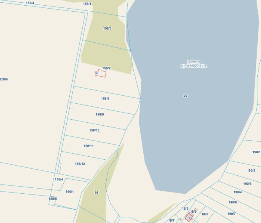 Możliwy jest zakup również sąsiadujących działek. Działki mają wymiary od ok 5000 m2 do 3500 m2. Każdą z działek można podzielić na mniejsze działki pod domki letniskowe oraz działki na domy całoroczne. Nieruchomość znajduje się w pięknej i spokojnej okolicy nad samym jeziorem Niedźwiady z możliwością stworzenia prywatnej plaży.