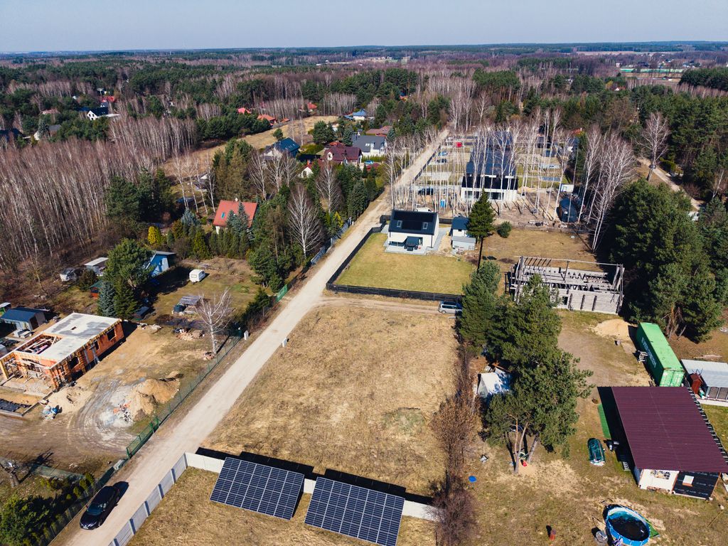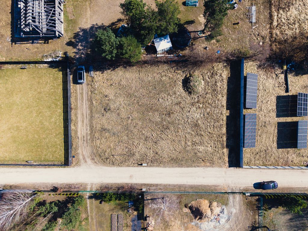 - Media: Prąd znajduje się już na działce, woda w jej granicy (ogromna oszczędność na przyłączach!).