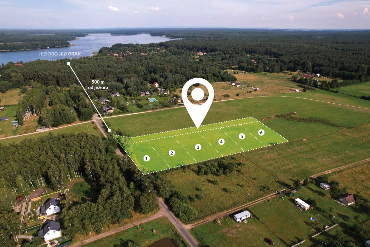 - gruntu pod dom całoroczny w otoczeniu natury, gdzie cisza i bliskość jeziora tworzą wymarzone warunki do życia,