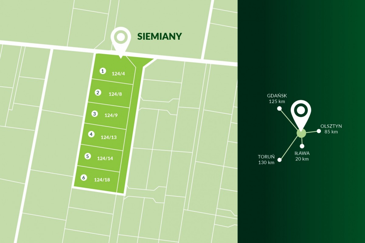 Jeziorak, lasy i pełne uroku Siemiany tworzą wyjątkowe otoczenie, które łączy komfort życia z potencjałem do prowadzenia działalności usługowej i rekreacyjnej.