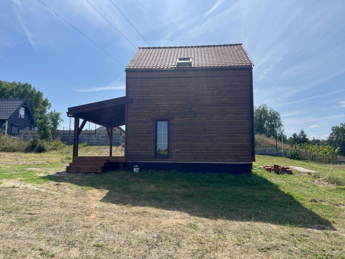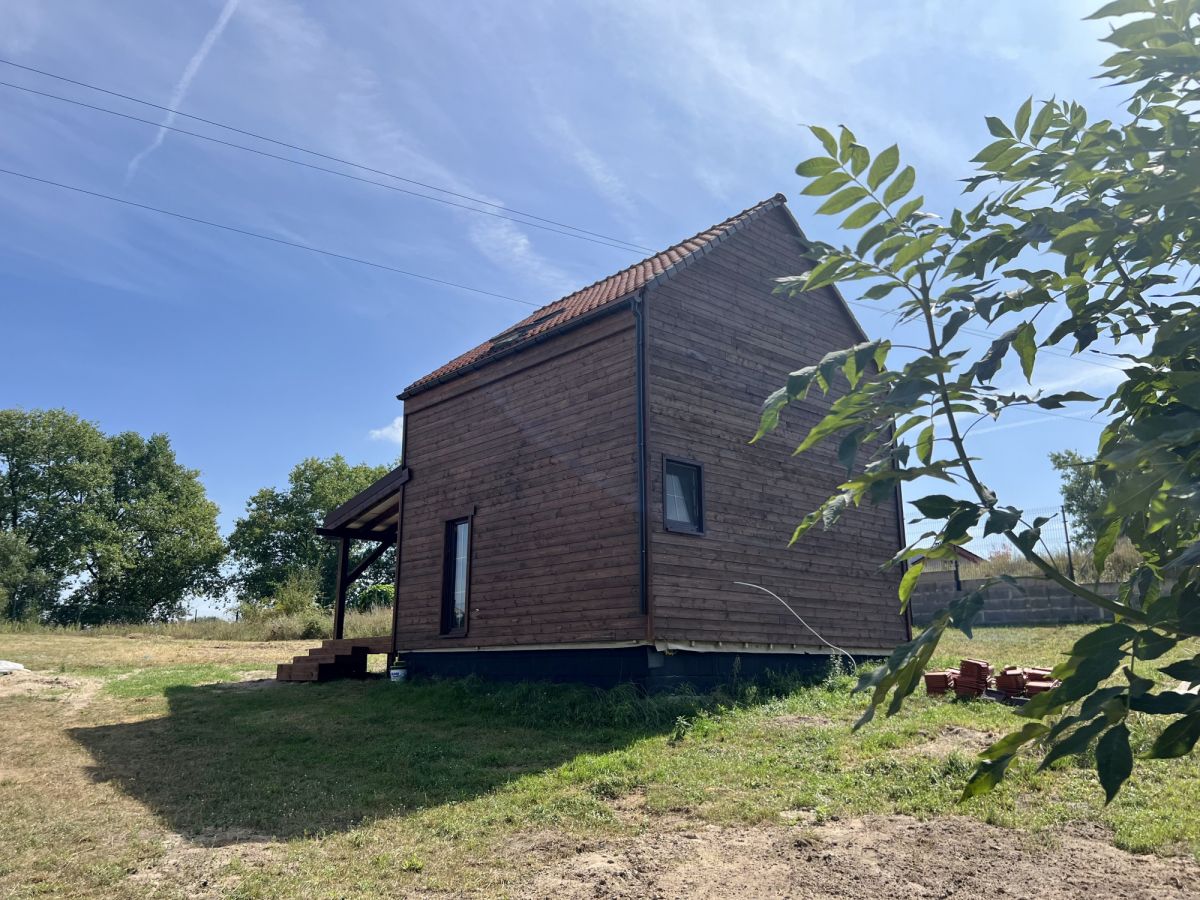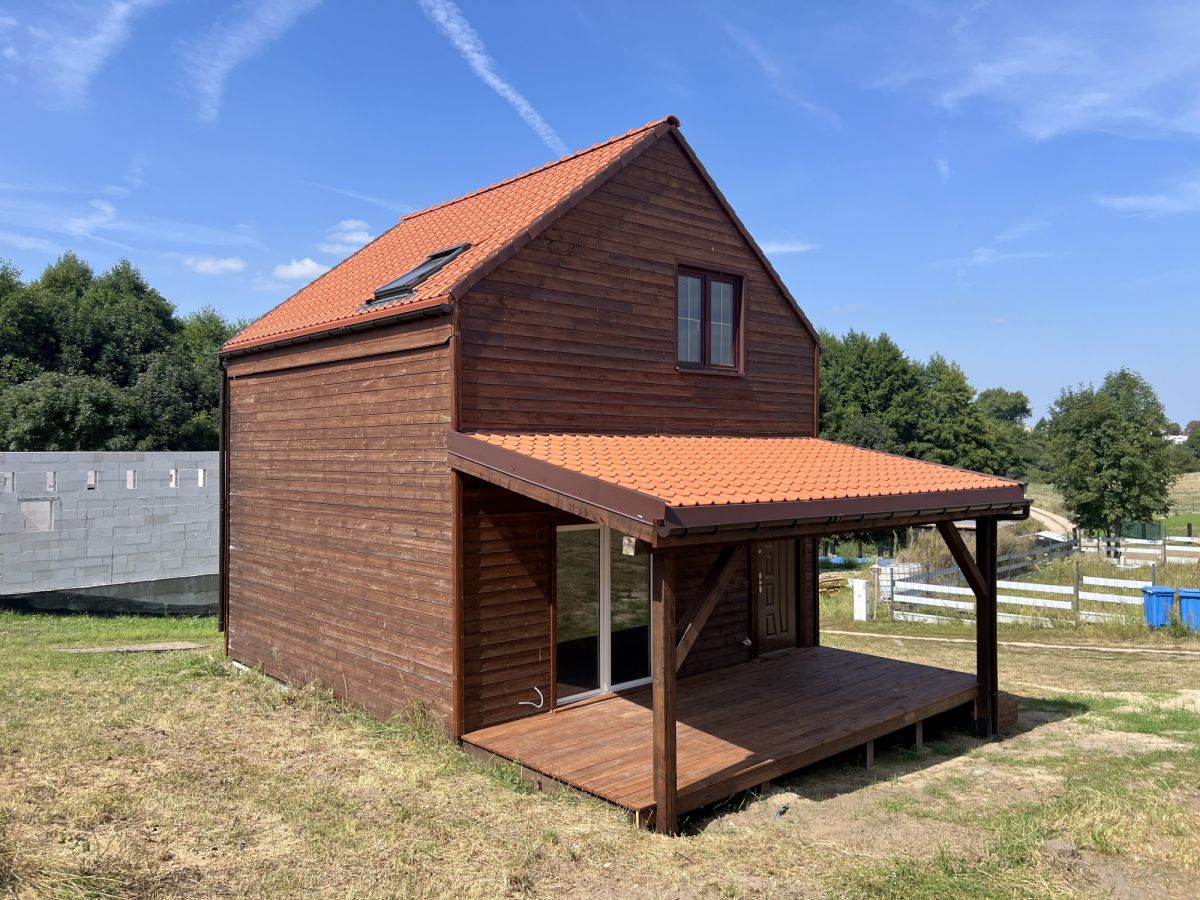 Budynek powstał w lipcu 2024 r. Jest w stanie do wykończenia. Wykonany w technologii drewnianej, docieplony wełną 20 cm. Dach jest podwójnie izolowany, pokryty dachówką ceramiczną. Wewnątrz rozprowadzone zostały instalacje elektryczna oraz wodna. Dodatkowo do dyspozycji jest zadaszony taras wykonany z modrzewia syberyjskiego.
