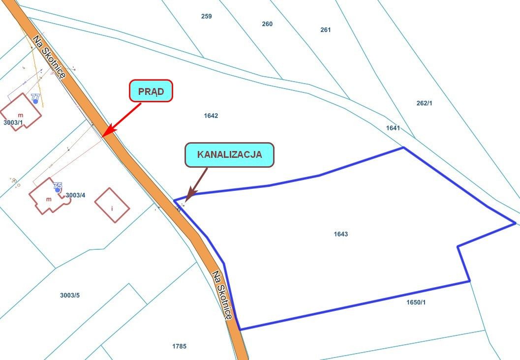Powierzchnia budowlana działki to 3259 m2, powierzchnia rolna 2275 m2.
