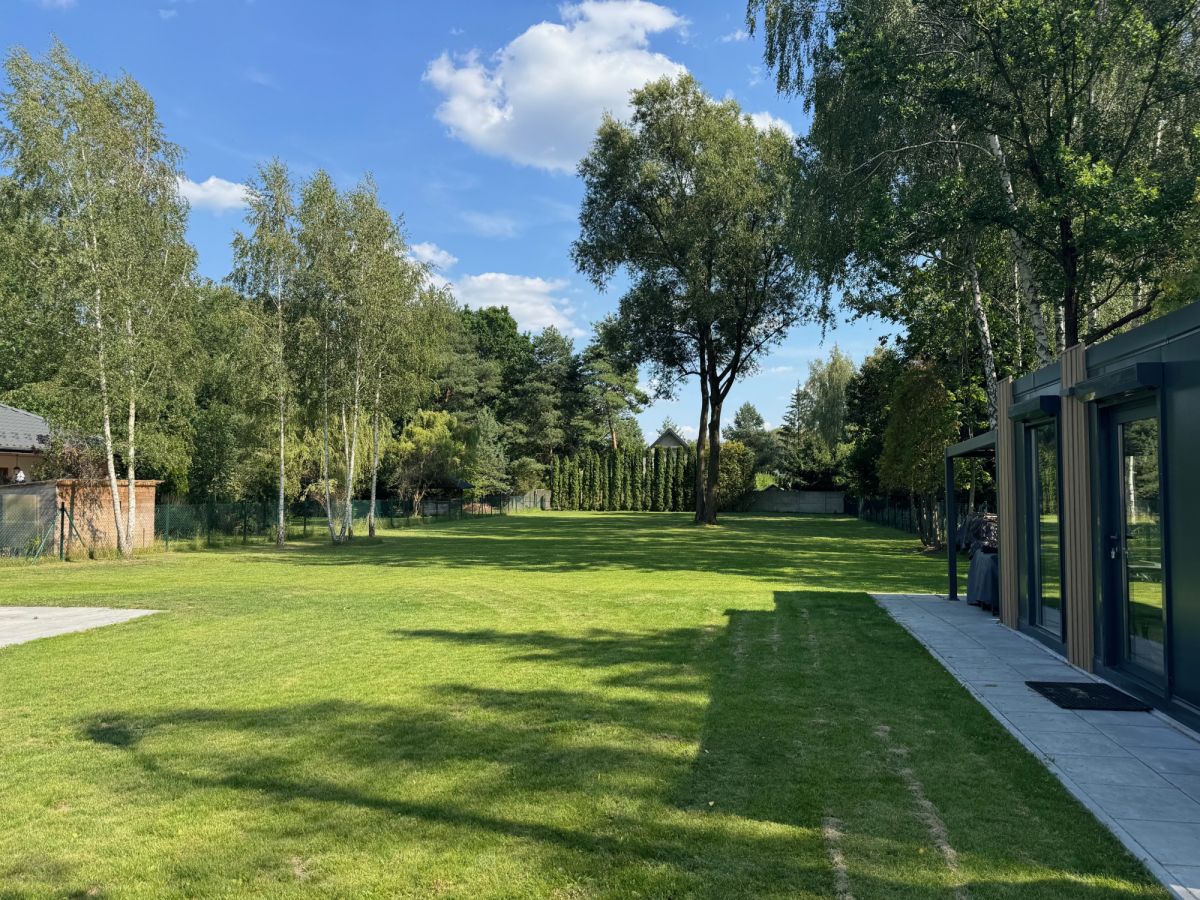 - cały teren działki nawieziony ziemią i wyrównany z zasianą trawą.