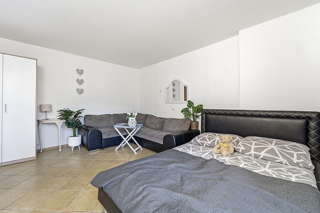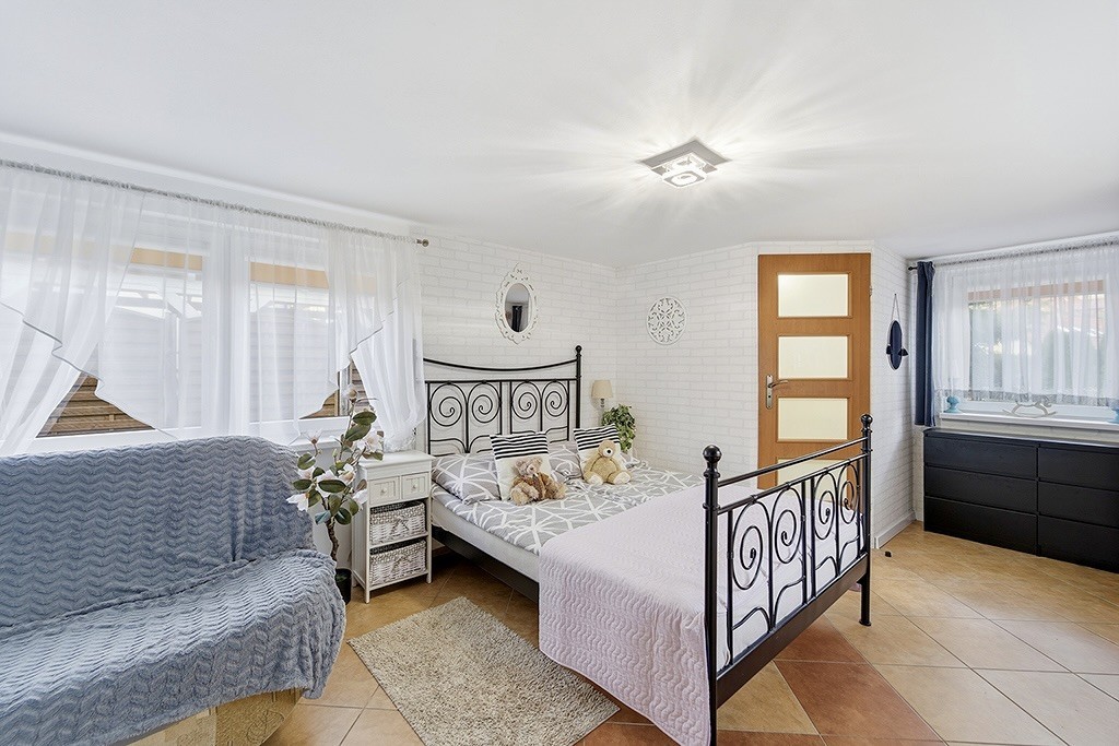 Budynek o powierzchni 208 m² posadowiony jest na zadbanej, ogrodzonej działce o powierzchni ok. 380 m² i łączy w sobie dwie kluczowe funkcje: komfortowe mieszkanie właściciela oraz pokoje na wynajem.