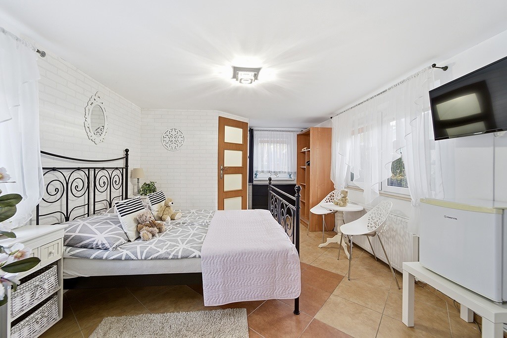 - niezależna kawalerka z osobnym wejściem idealna pod wynajem lub dla personelu.