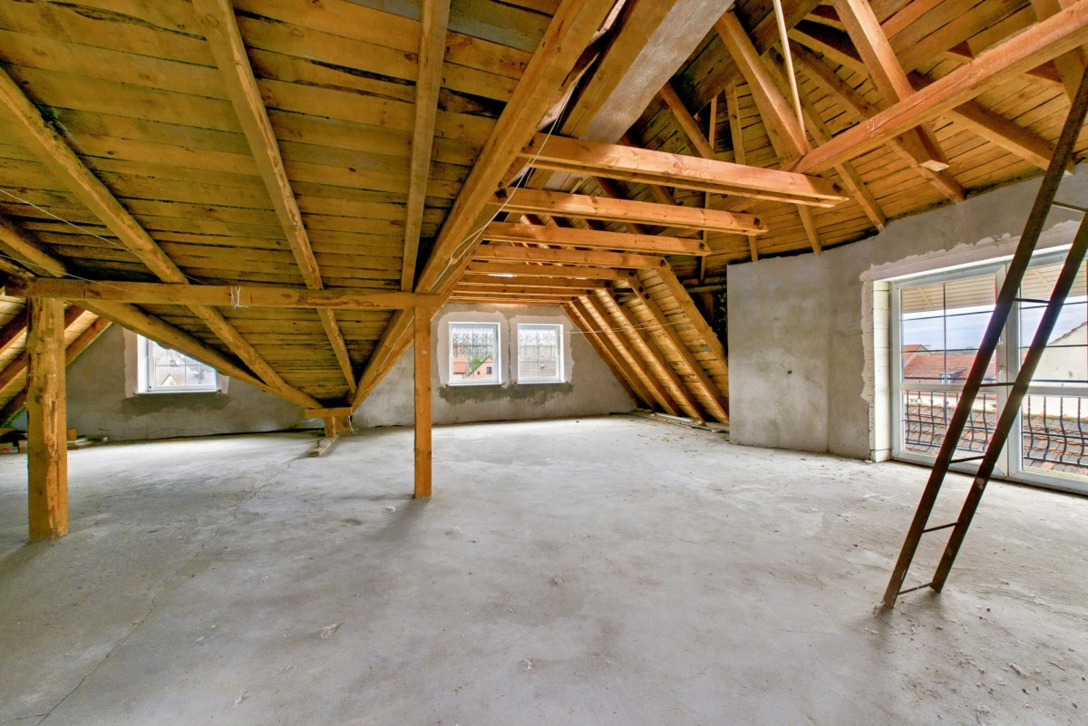 3) Przestrzeń poddasza o powierzchni 80 m² jest gotowa do zaadaptowania na kolejne mieszkanie, apartament lub pracownię, ponieważ przygotowano tam pełne przyłącza prądu, wody i kanalizacji.