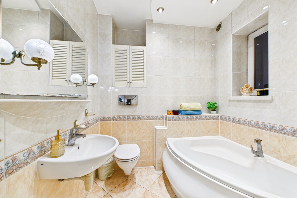- łazienka wyposażona w wannę, WC i umywalkę, a w pralni znajduje się dodatkowy prysznic,