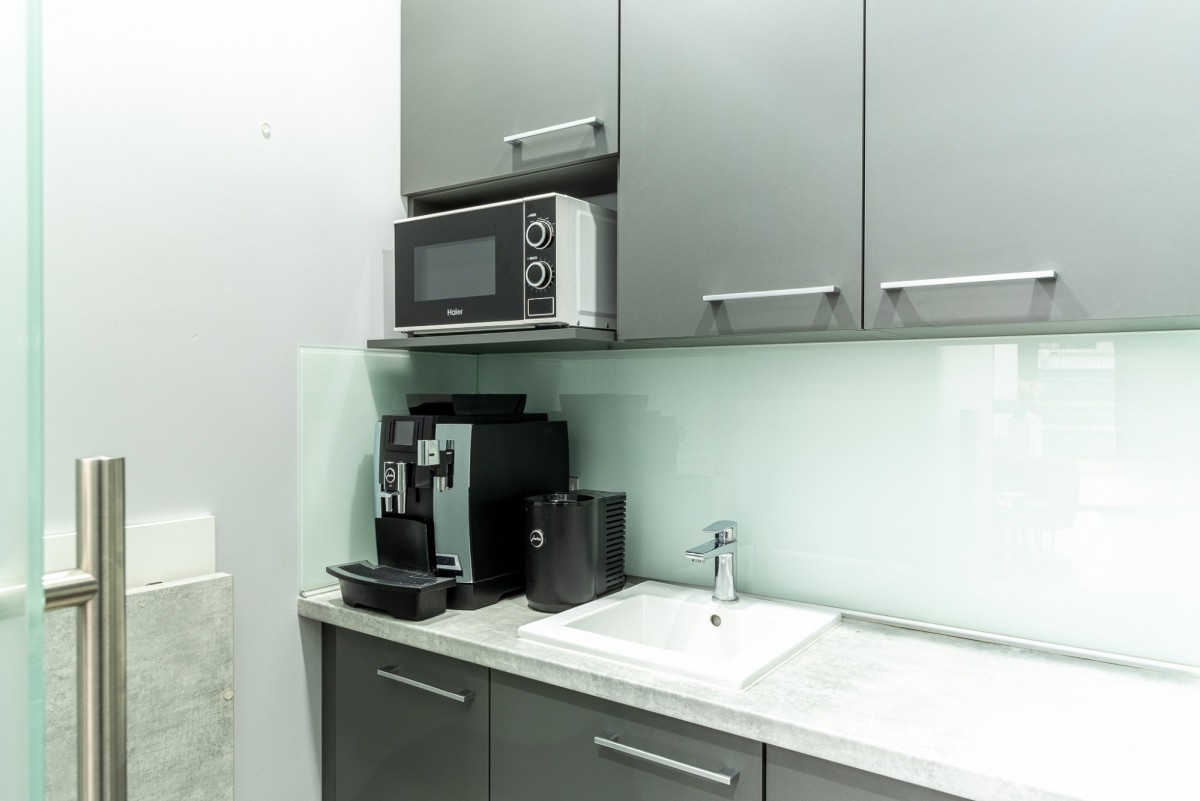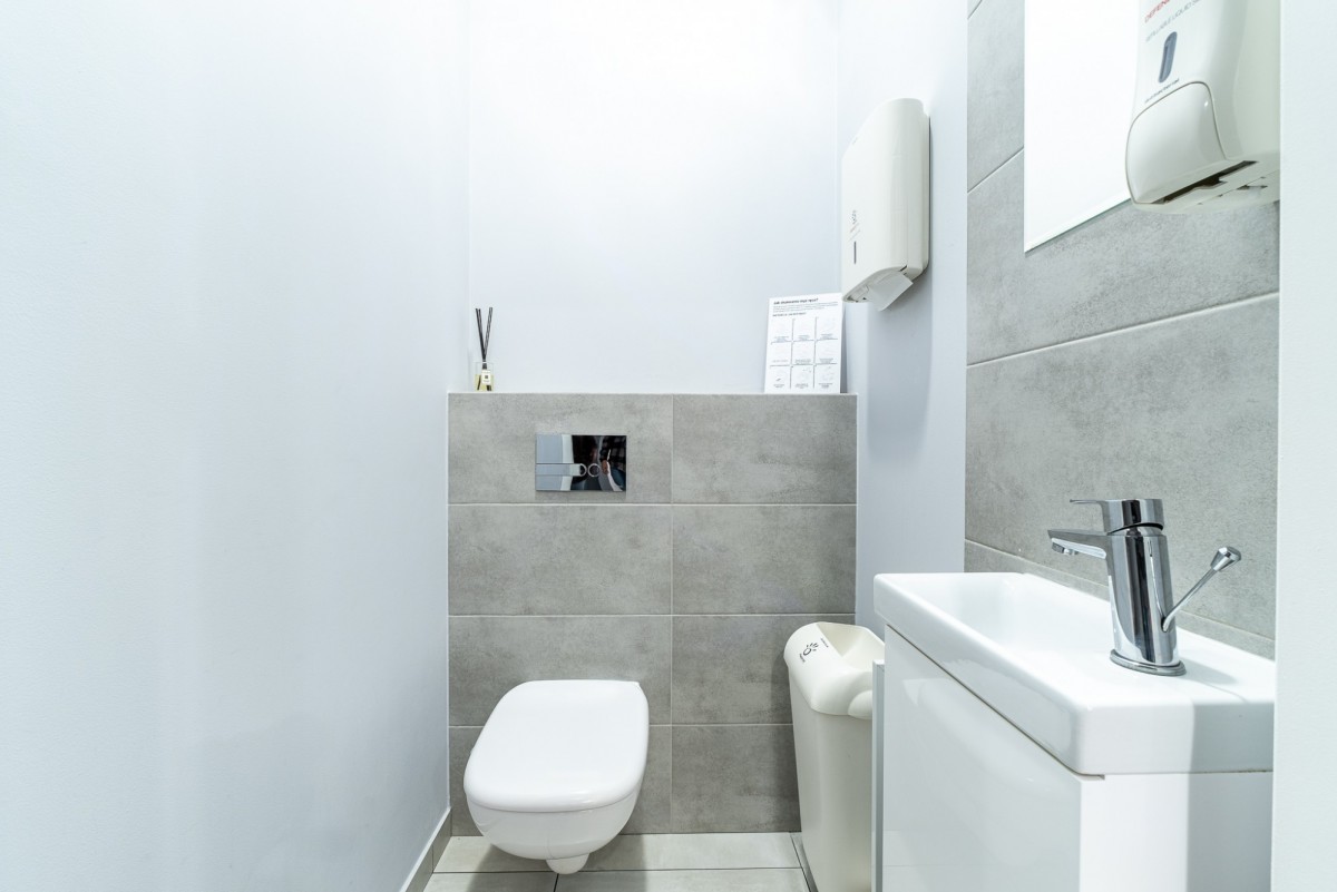 Do dyspozycji najemców oraz ich klientów są profesjonalnie zaprojektowane części wspólne: komfortowa poczekalnia dla klientów , toaleta dla klientów, toaleta dla personelu oraz kuchnia.
