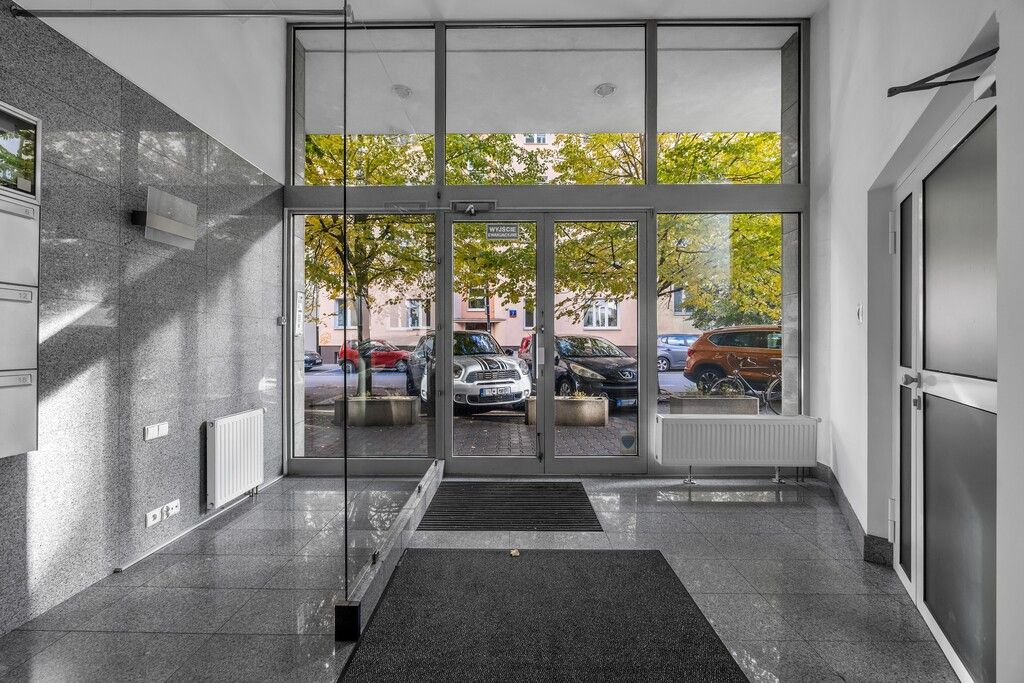Lokal znajduje się w pięciopiętrowym budynku z windą, na ostatnim piętrze, co gwarantuje ciszę, prywatność i świetny widok. Na kondygnacji znajdują się jedynie dwa lokale.