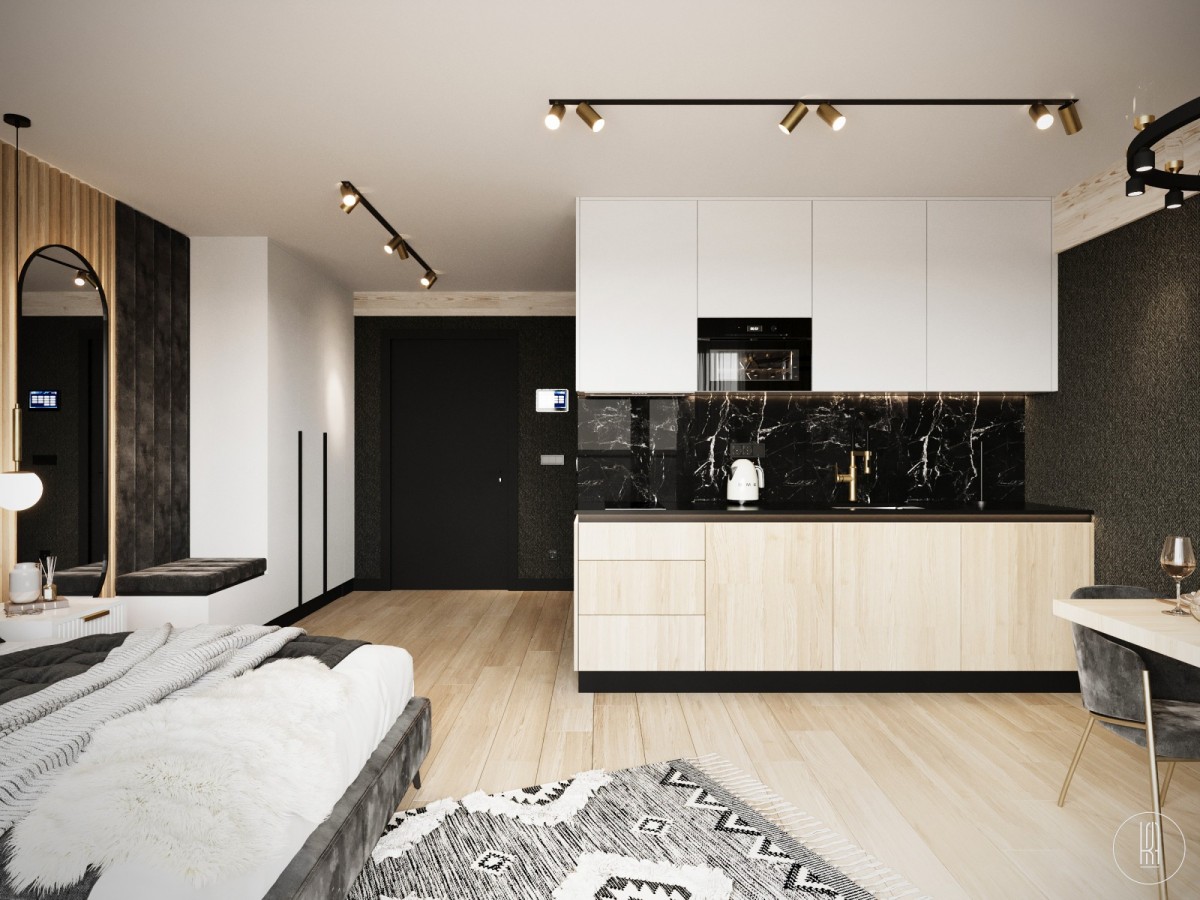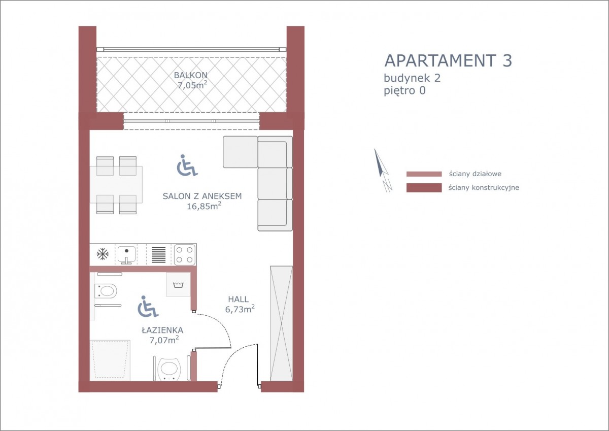 Układ apartamentu (pow. całkowita ok. 31 m² + 1 balkon):