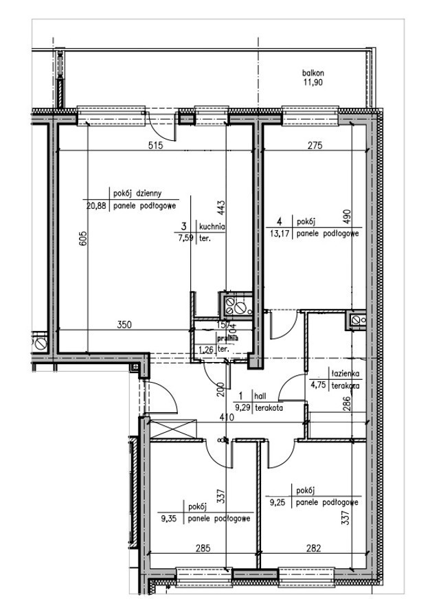 Mieszkanie: ma powierzchnię 75,54 m2 i składa się z: