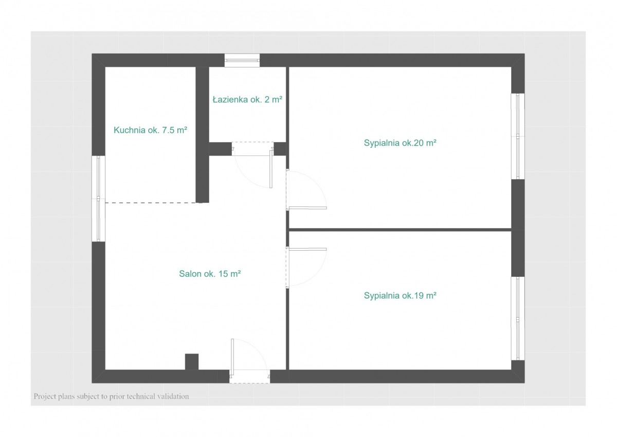 • otwarta kuchnia o powierzchni około - 7,5 m2