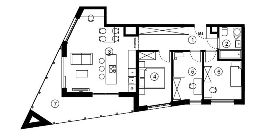 Oferta dotyczy mieszkania nr 04 o pow. 70,12 m2, znajdującego się na 1 piętrze składającego się z: