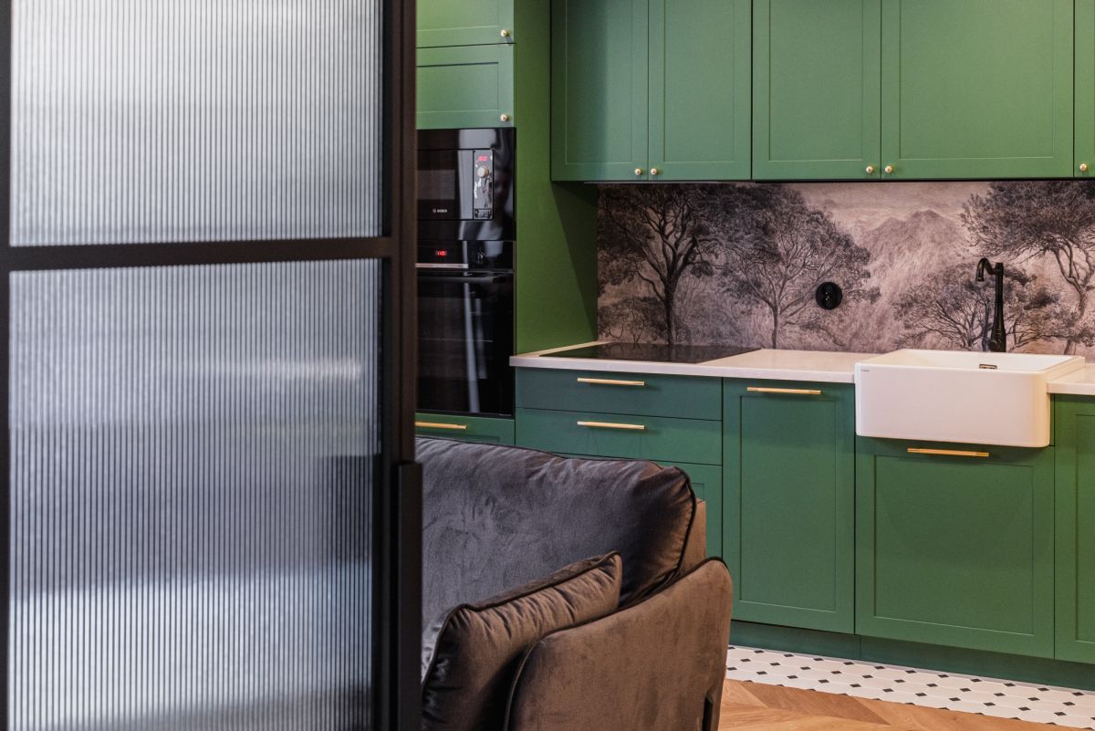 - Nowoczesna kuchnia - wyposażona w wysokiej klasy sprzęt AGD - lodówkę, zmywarkę, piekarnik z kuchenką oraz pralkę