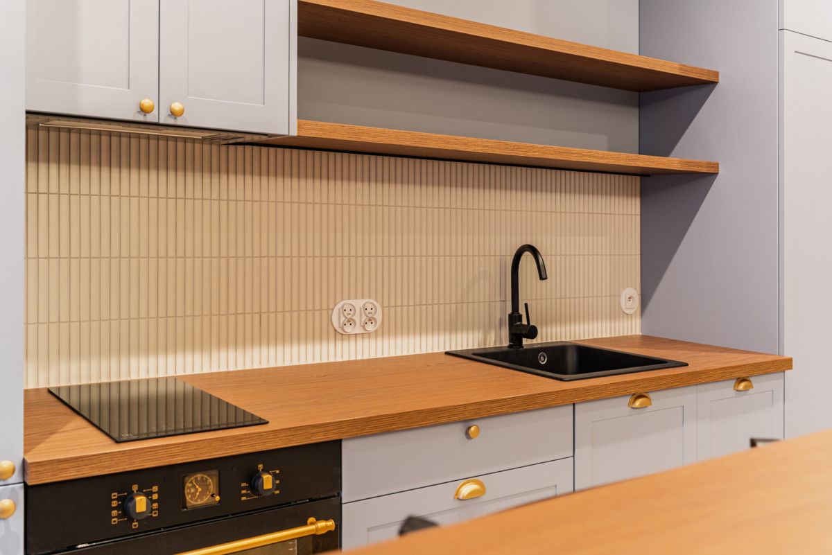 - Nowoczesna kuchnia - wyposażona w wysokiej klasy sprzęt AGD - lodówkę, zmywarkę, piekarnik z kuchenką oraz pralkę.